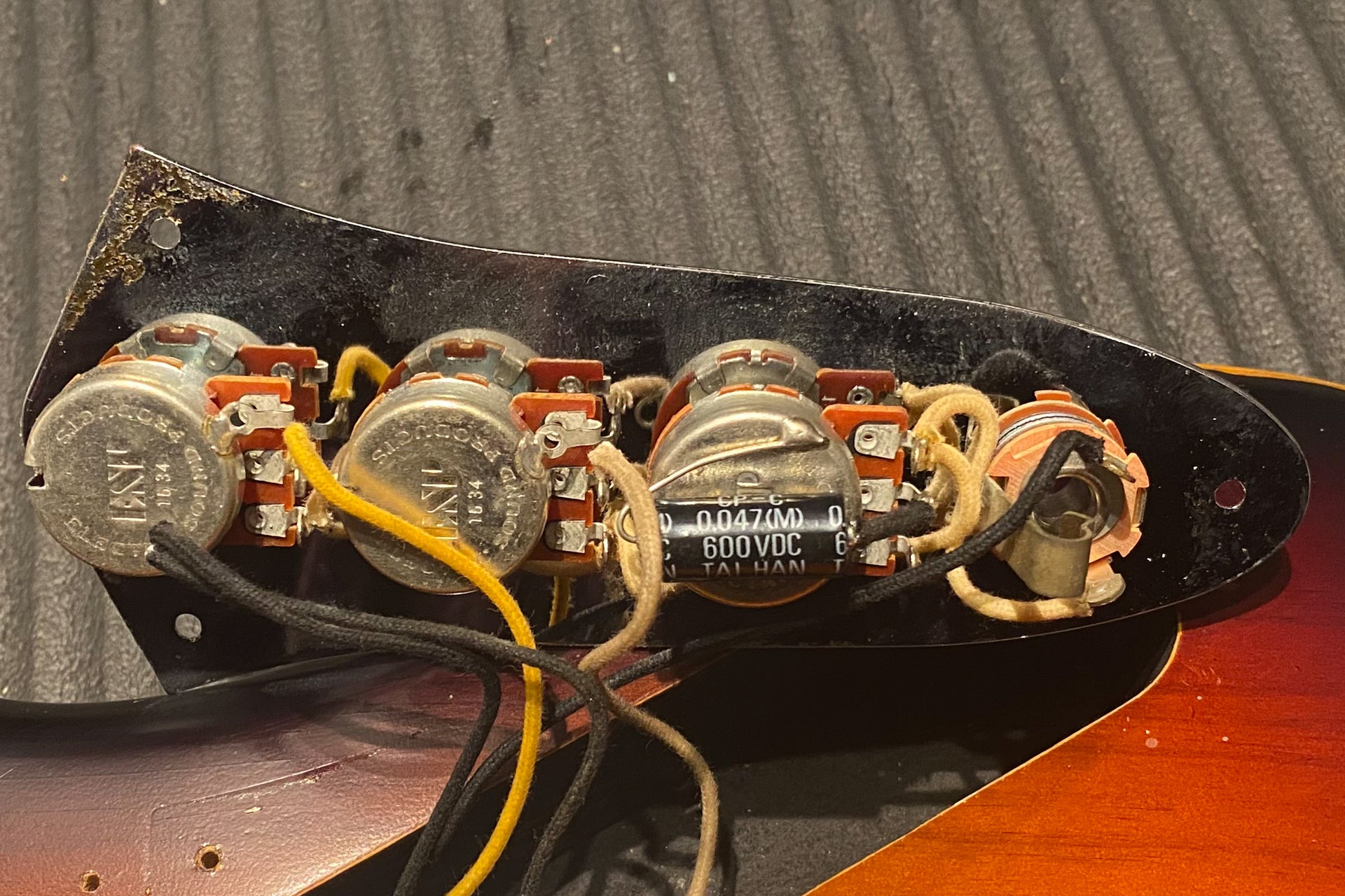 There are screw hole marks that suggest a pickguard and bridge cover were installed.