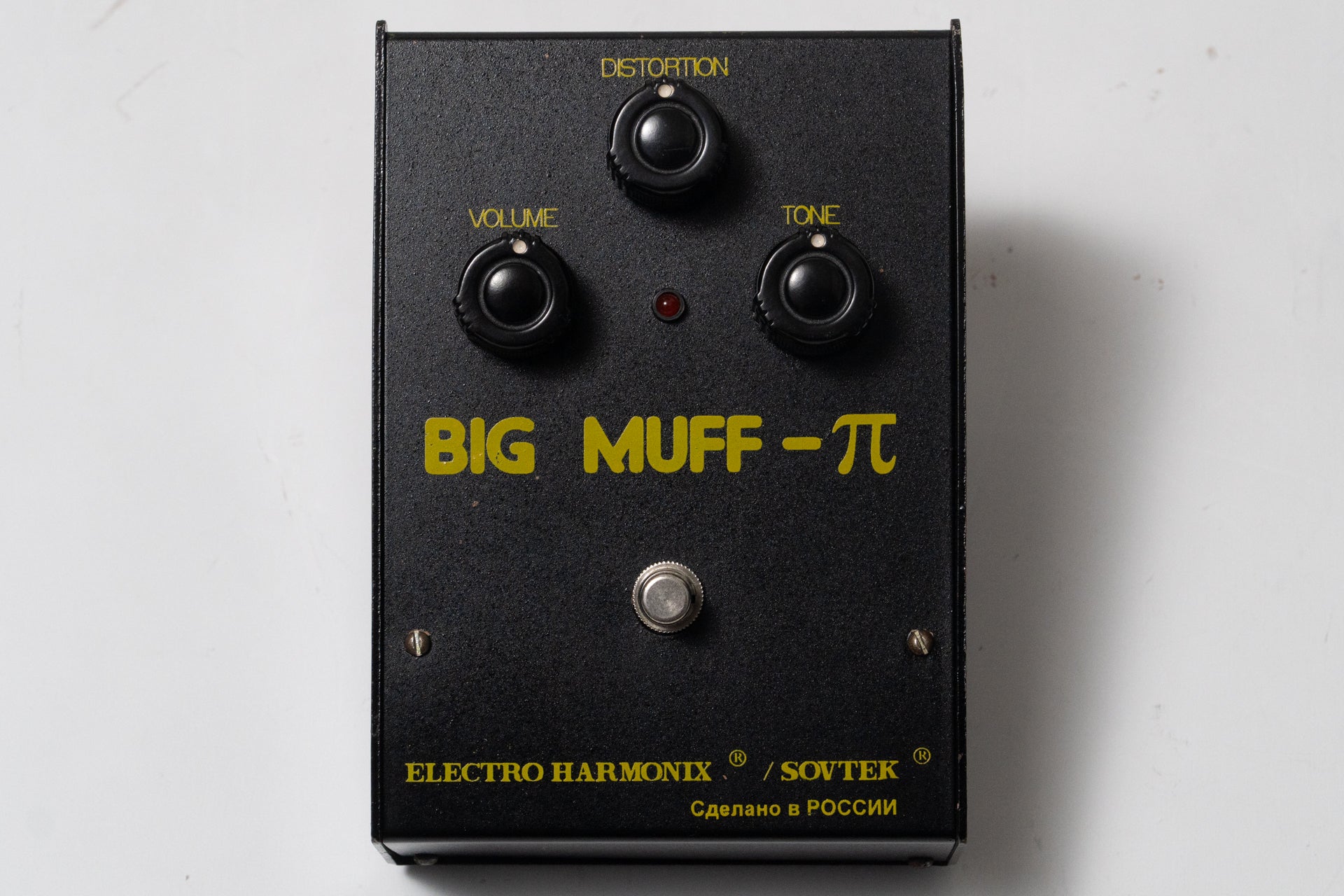 There are many models of the Big Muff, depending on the production period, but this is a model known as the Army Black, manufactured in Russia in the 1990s and 2000s.