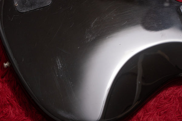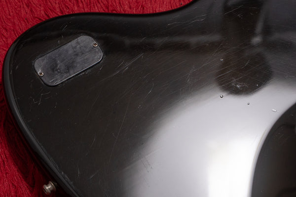 The pickups have been replaced with an EMG J Set, and a recess has been made on the back of the body for a battery compartment.