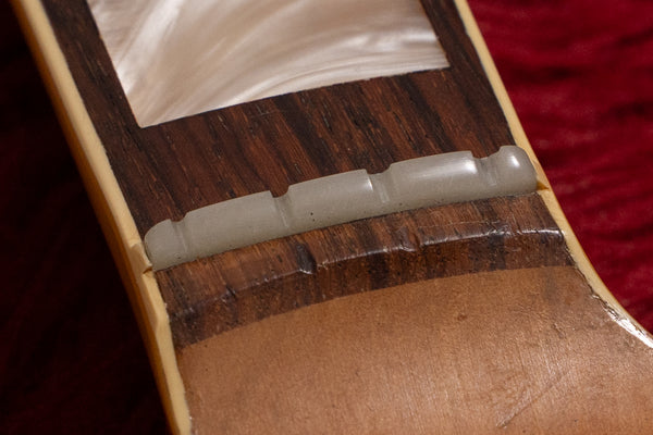 The block inlay at the third fret had peeled off, so it was glued back in place; the inlay is missing.