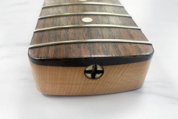 The fingerboard is a 1960 specification, made of slab-laminated rosewood.