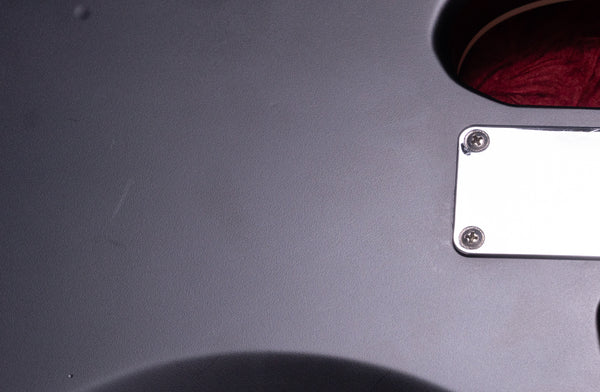 The body and finish show scratches and dents overall. There are scratches and paint peeling on the headstock. There is a 14.0mm diameter area of paint peeling at the joint.