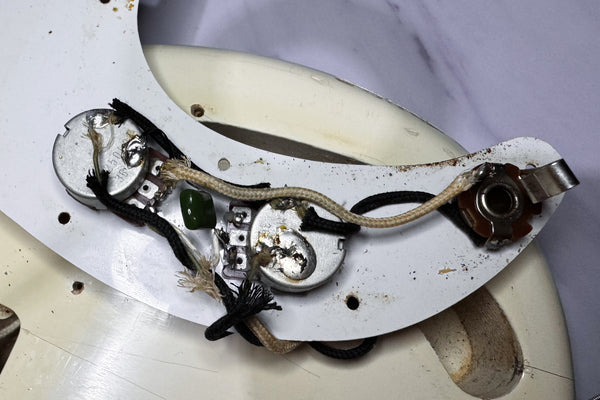 All parts remain original, but there are signs of soldering on both the volume pot and tone pot.