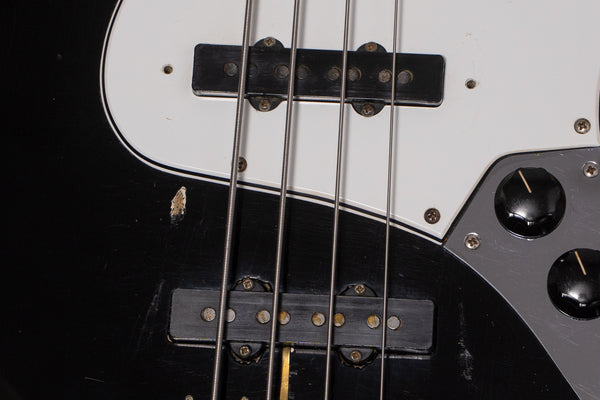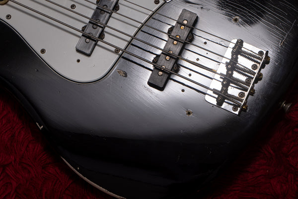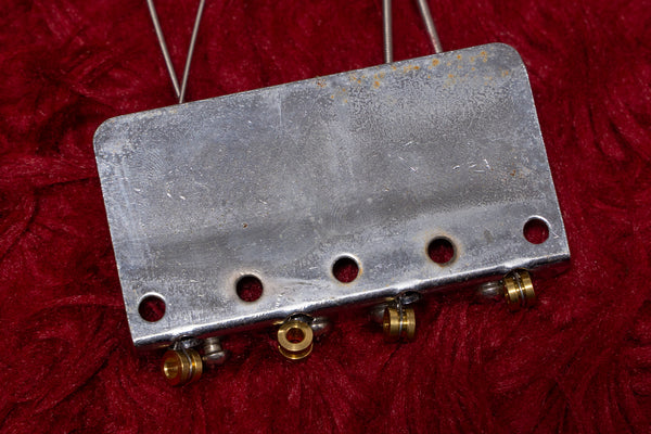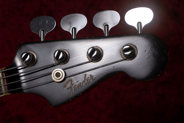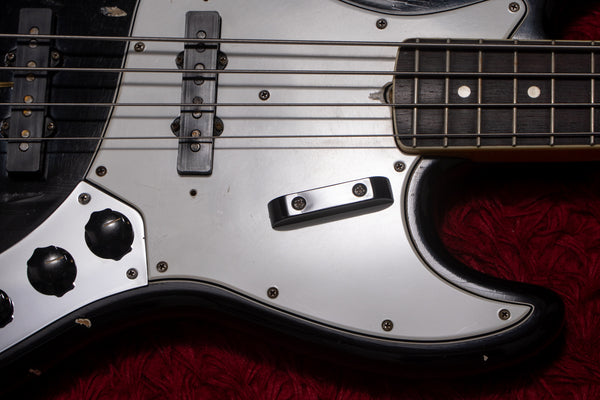 As you can see, the body has holes for the mute system and a ground wire extending from the bridge, which are characteristics of Jazz Basses made before 1963.