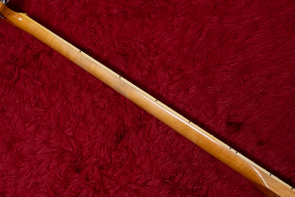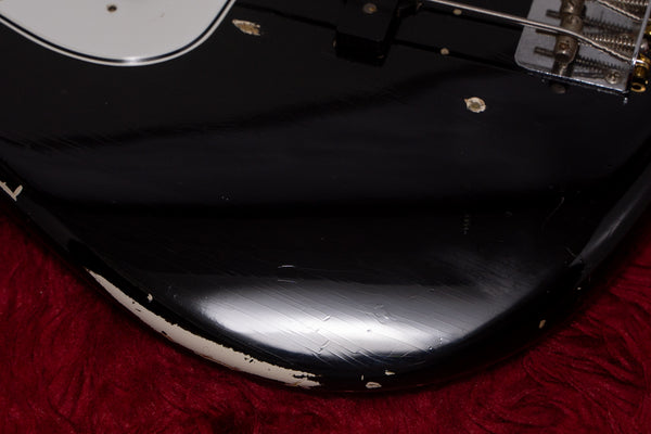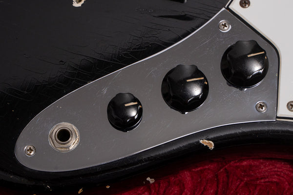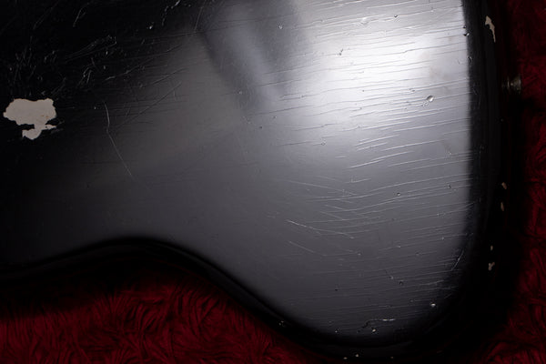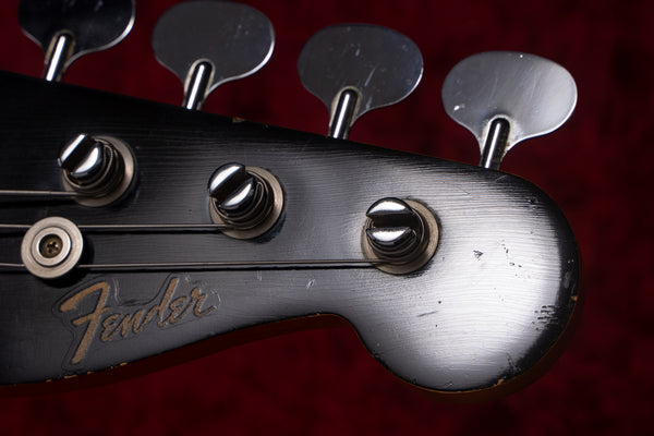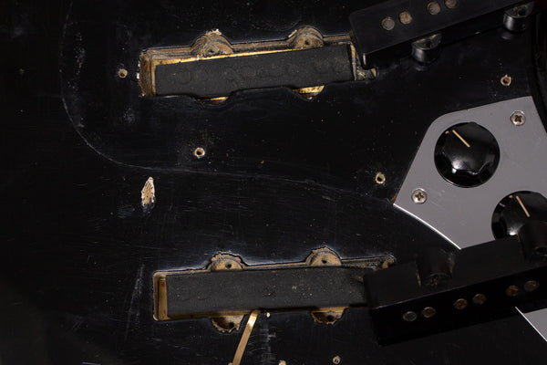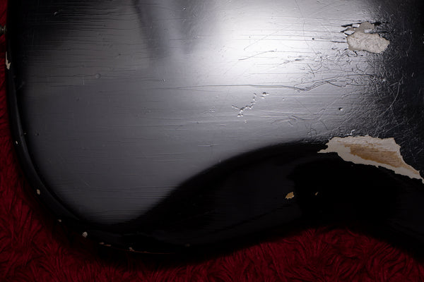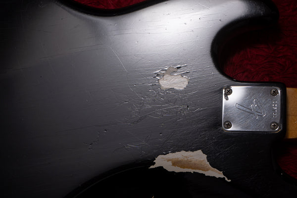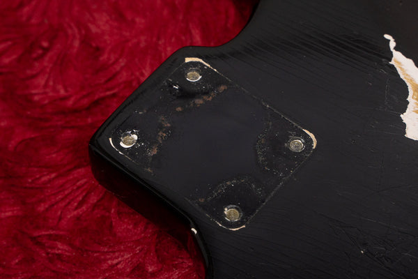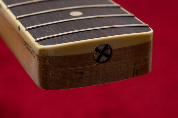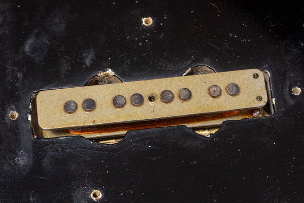 It has been refretted and re-nutted. Careful, high-quality work has been done without destroying the original atmosphere. One of the neck PU mounting screws has been replaced. There is a 13 BLACK stamp under the pickguard. This suggests that it has been factory refinished.