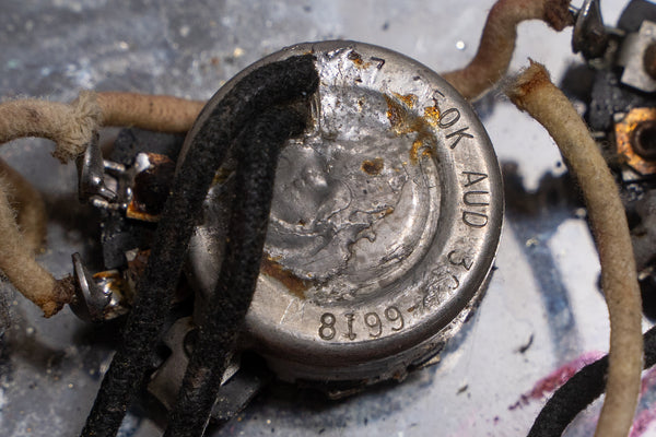 The neck PU volume pot is stamped with 304-661○, and the bridge PU volume pot and tone pot are stamped with 304-6618.