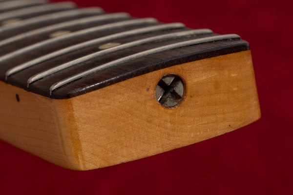 The guitar has been refretted and the nut replaced accordingly. The pickguard has also been replaced (the original PG is included). The potentiometers have been replaced with current CTS models, and the jack has been replaced with current SWITHCRAFT models. The pickups have been replaced with Lindy Fralin models.