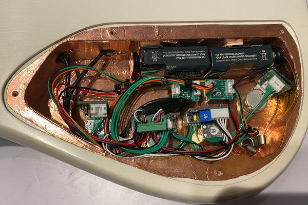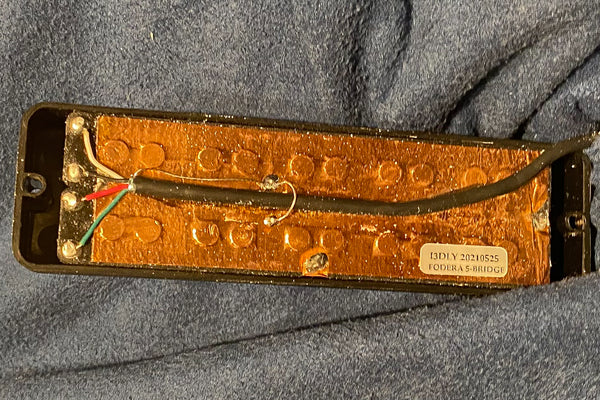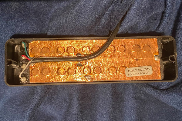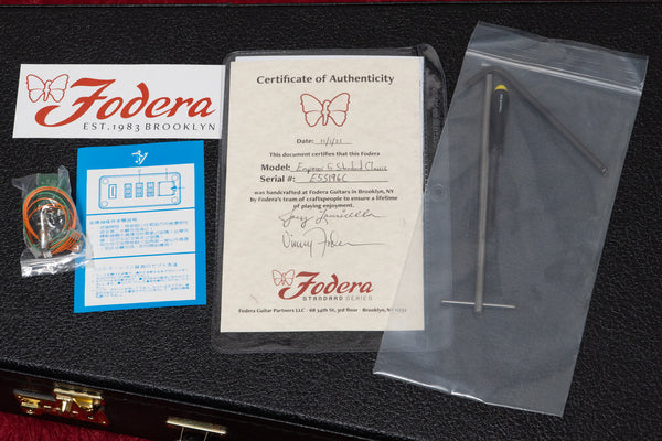 The pickups are original dual-coil, and the preamp is also original from Fodera.