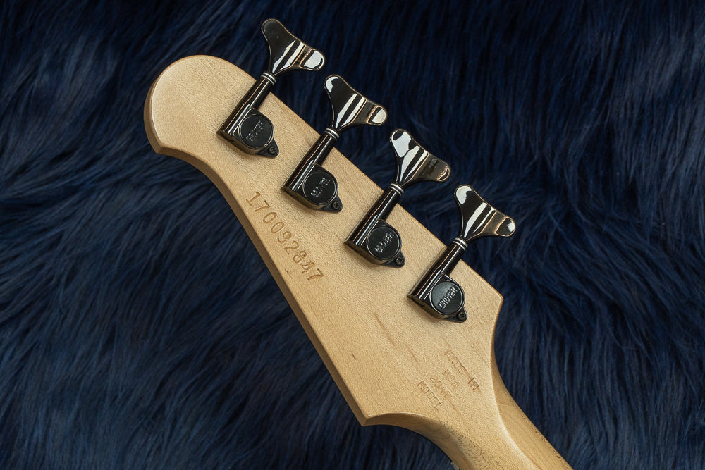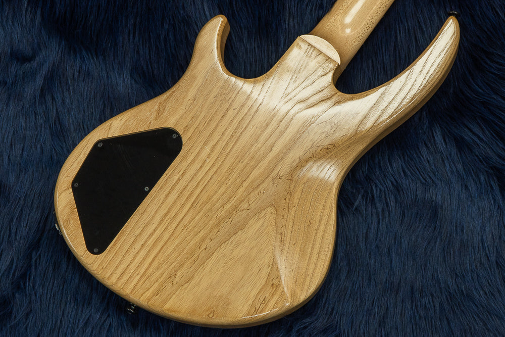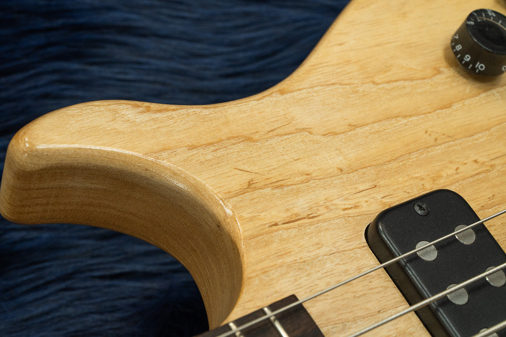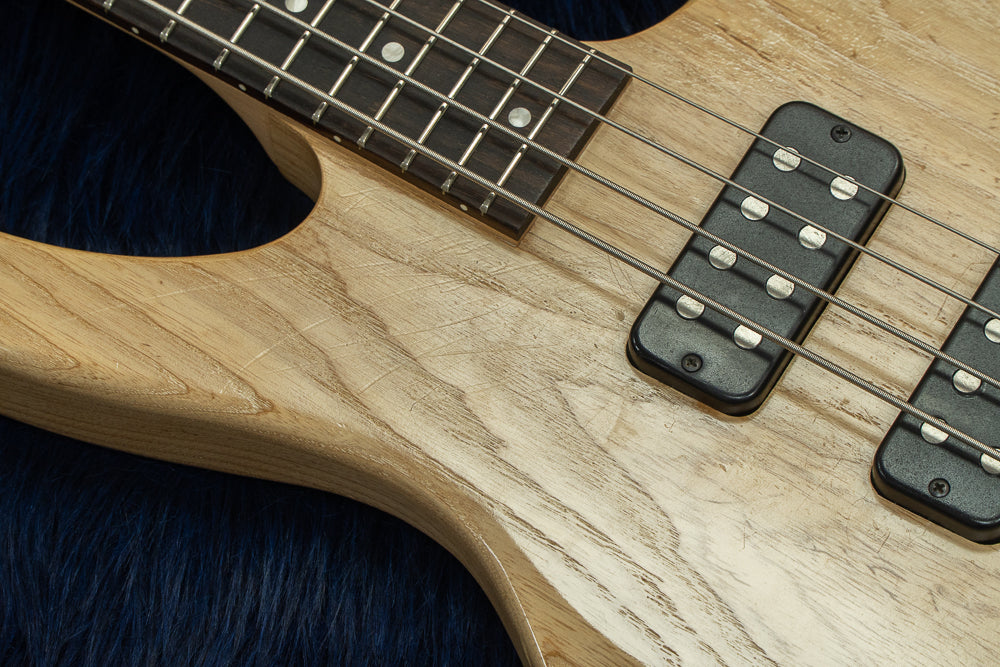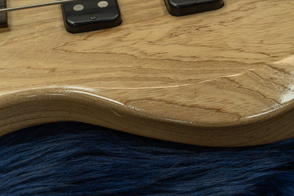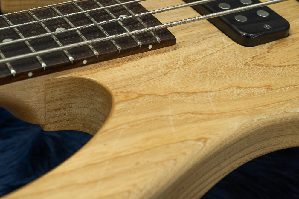 The neck is a three-piece laminate, made from carefully selected quartersawn wood. Quartersawn wood is known for its strength in a specific direction—in guitars and basses, the direction in which the strings are pulled.