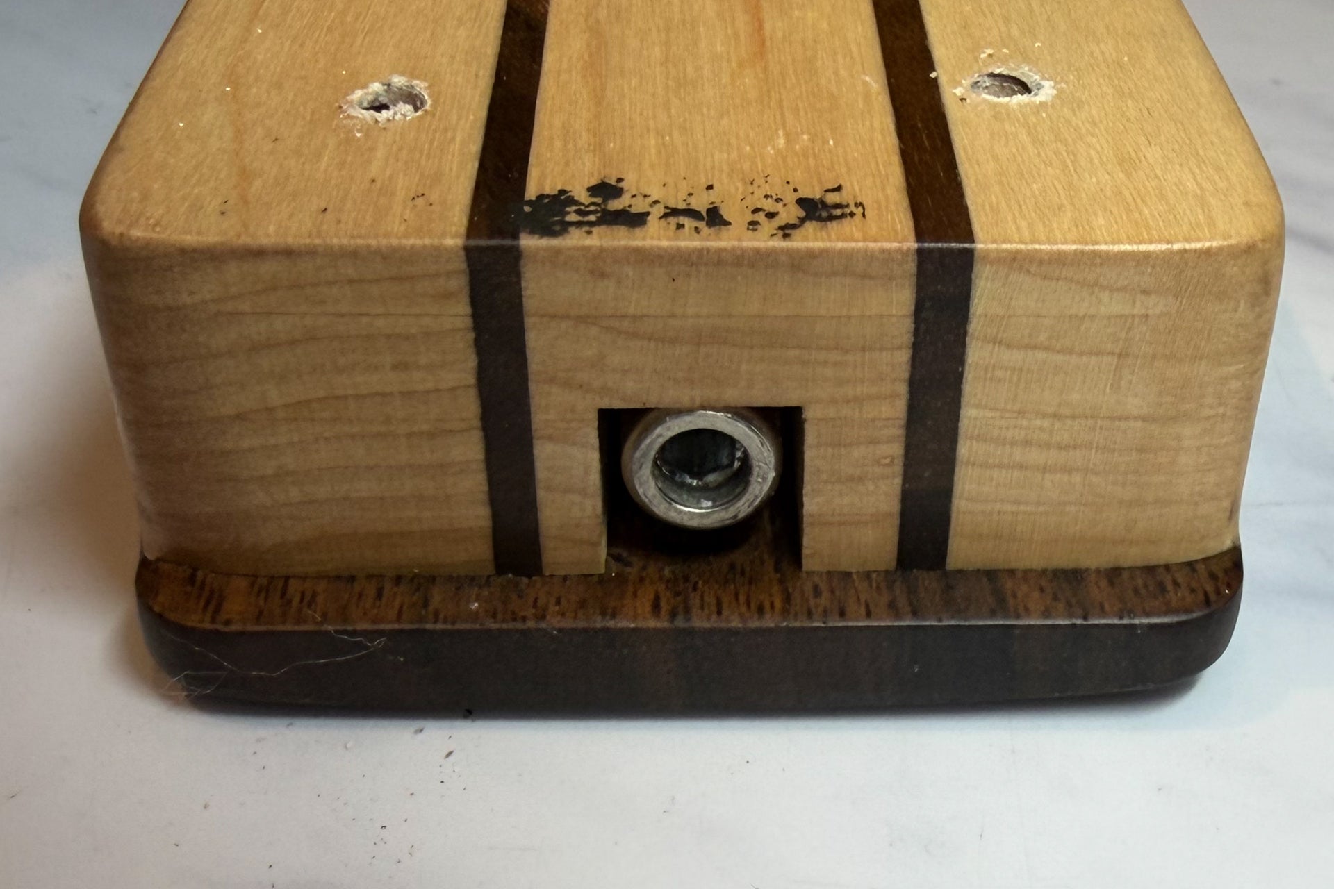 The fingerboard is made of Indian Laurel, with a relatively flat 12-inch radius.