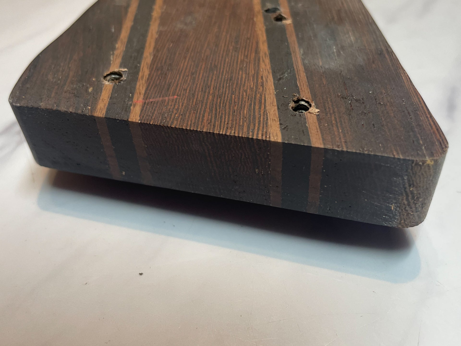 The body top is made of Burl Poplar, and the body back is made of Mahogany.