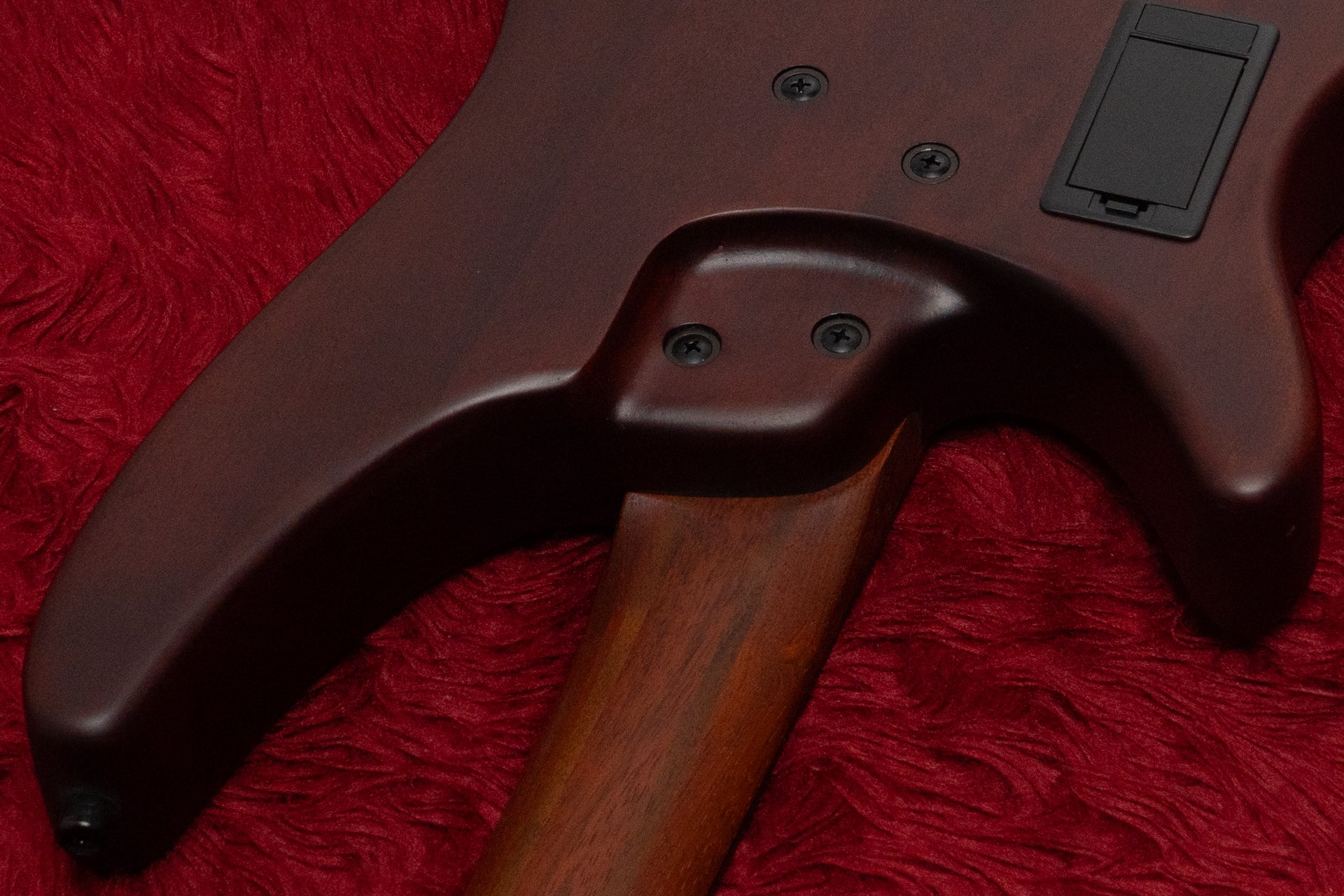 The neck is a 5-piece laminate type using jatoba and walnut, and the fingerboard is made of Panga Panga.
