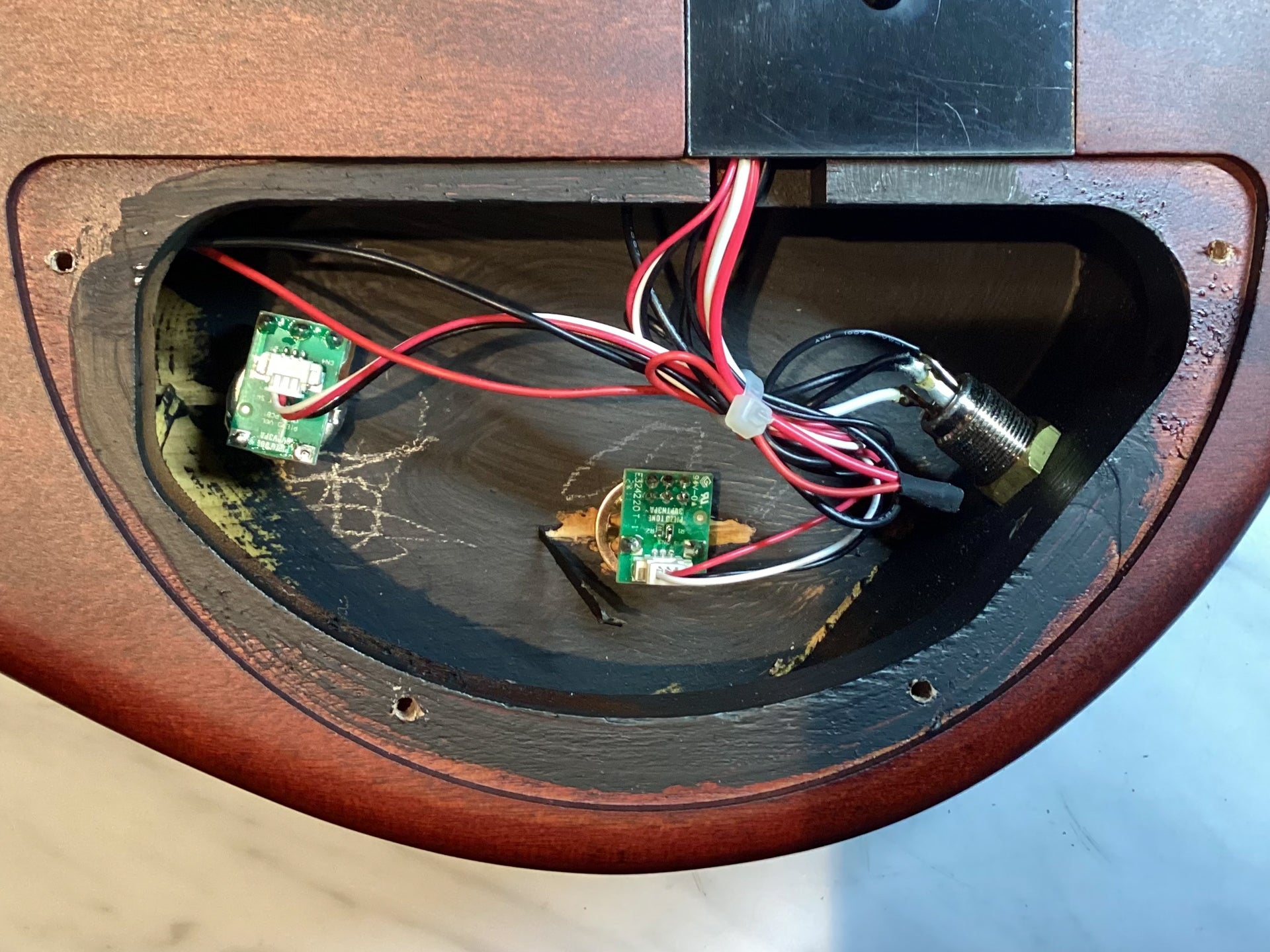 Controls: Volume, Tone, Rear trim pots for individual string gain trim
