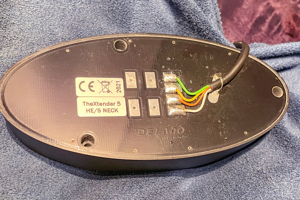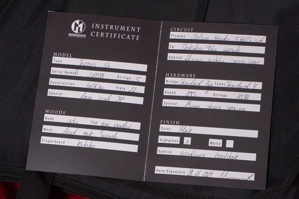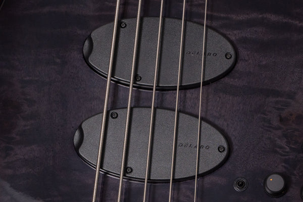 The pickups are a Delano Xtender 5 HE/S Set, and the preamp is a modern Darkglass Tonecapsule.