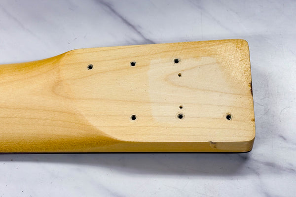 The neck is made of maple and the fingerboard is made of East Indian rosewood.