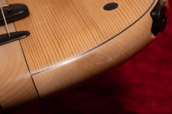 The body features a spruce top, a profiled flamed maple back, and a wenge center.