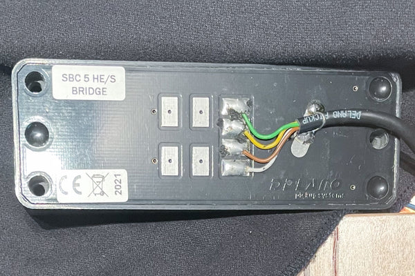 The standard Aguilar OBP-3 pickups have been replaced with Delano SBC 5 HE/S pickups.
