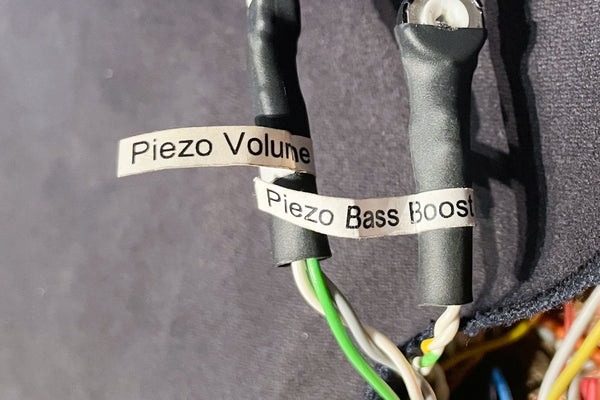 Controls: Volume (Push-Pull/Hum-Single), Tone (Push/Pull - Active/Passive), Blender (Magnetic/Piezo), Piezo Volume (In-Cavity), Piezo Bass Boost (In-Cavity)