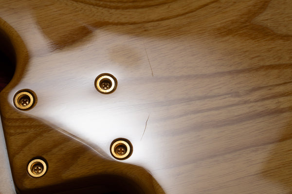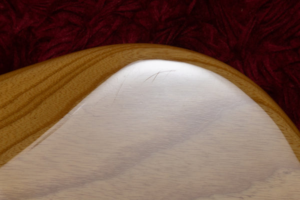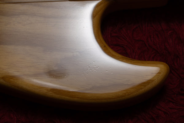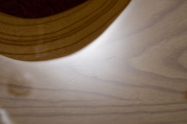 The neck is slightly high-rise. Adjusting the neck to a forward bow (almost straight) and the string height to 2.0-2.8mm allows for smooth playability. The neck has been adjusted to be nearly straight to prevent buzzing in the upper positions, so there is some buzzing when playing hard up to the 5th fret on the first string. Setting the string height to 2.2-3.0mm will allow for play without any buzzing.
