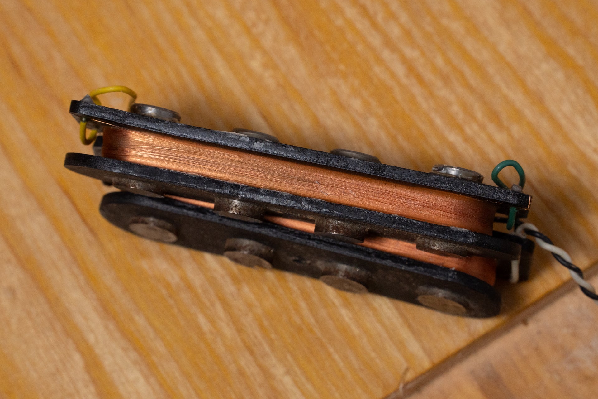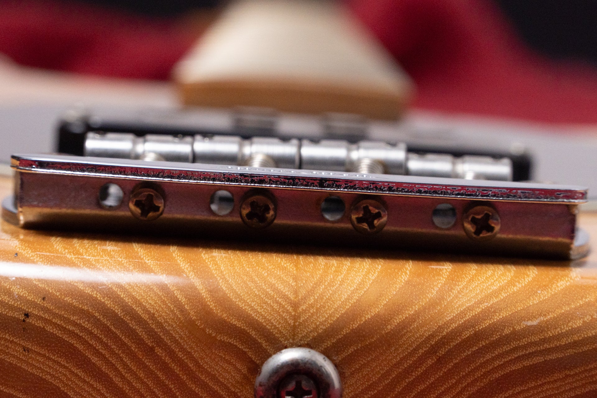 This one was manufactured after the 1980s, and therefore features a four-point joint and a through-the-front bridge.