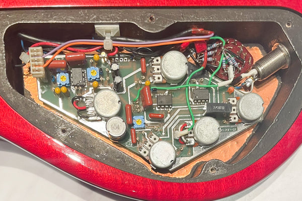 In addition to the 3-band EQ, gain settings for the neck and bridge pickups can be adjusted within the cavity, as well as a notch filter.