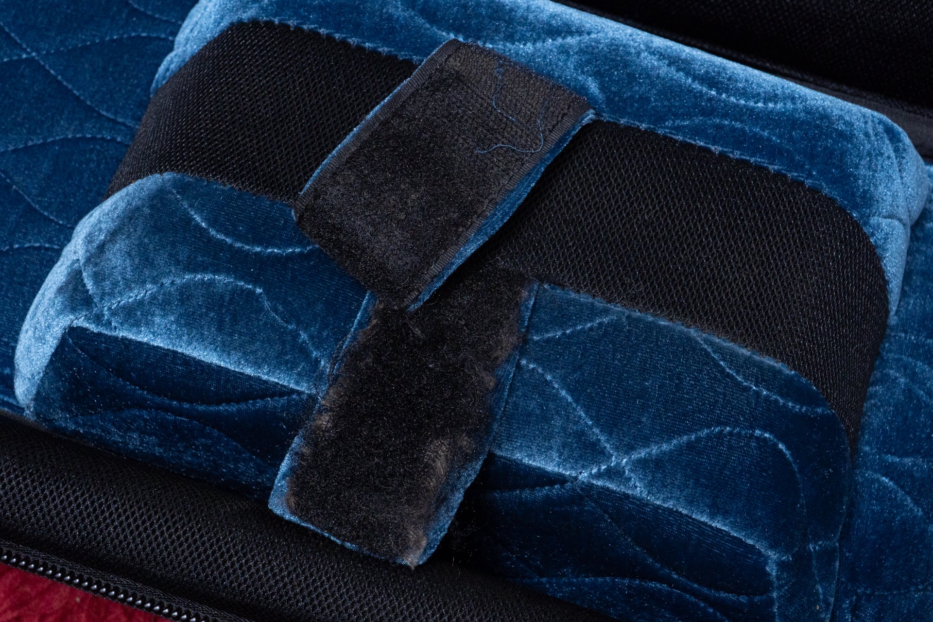 There are scratches and stains, and the case shows signs of general use. There is noticeable damage to the Velcro fastening the neck. The case is in perfect working order.