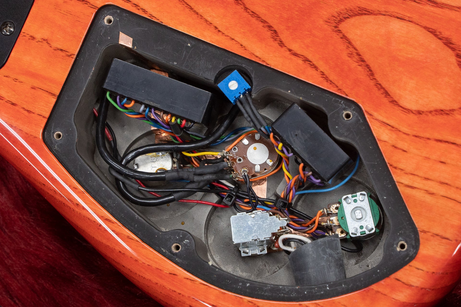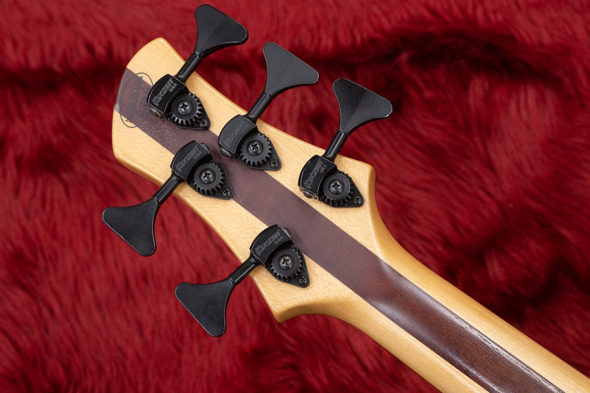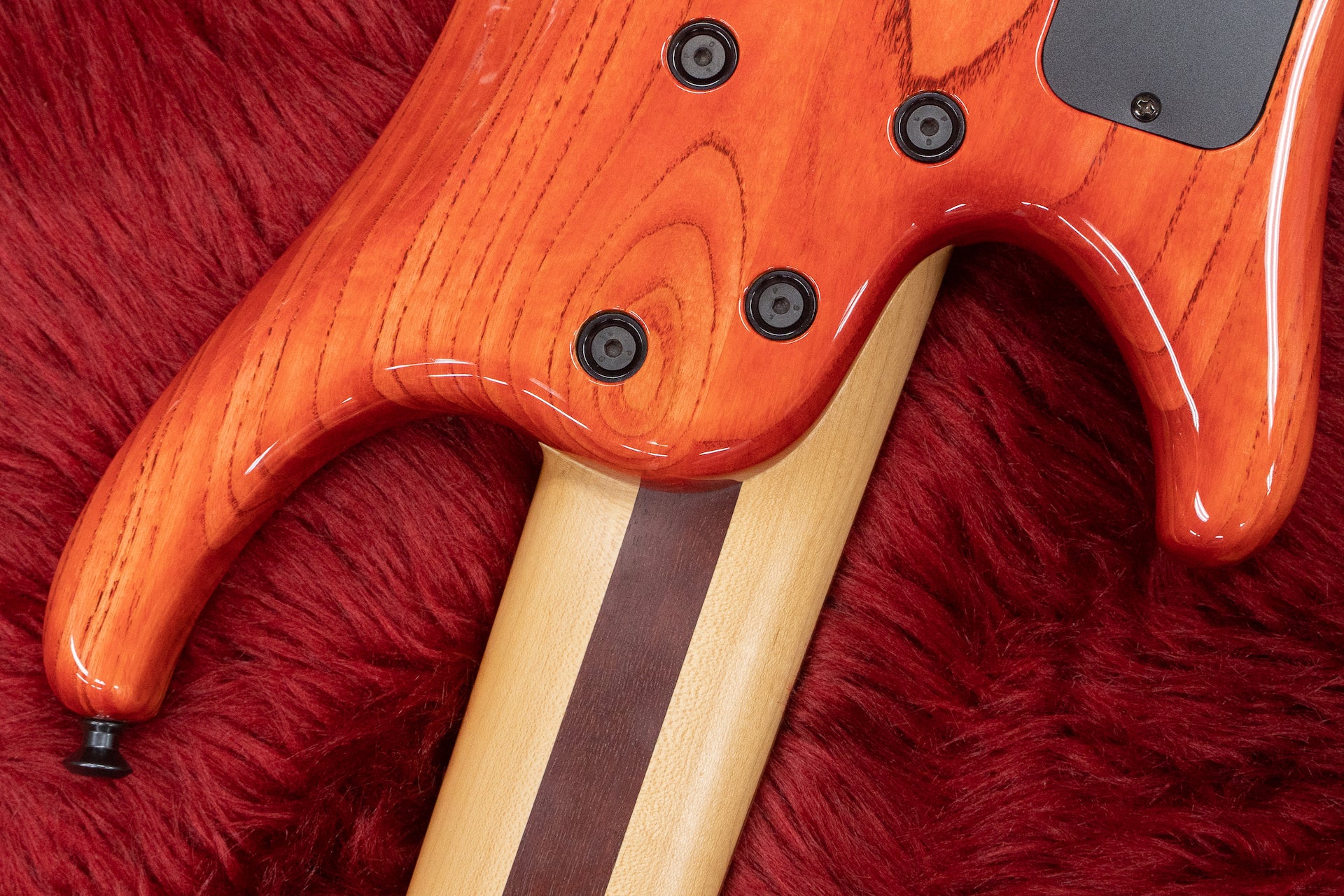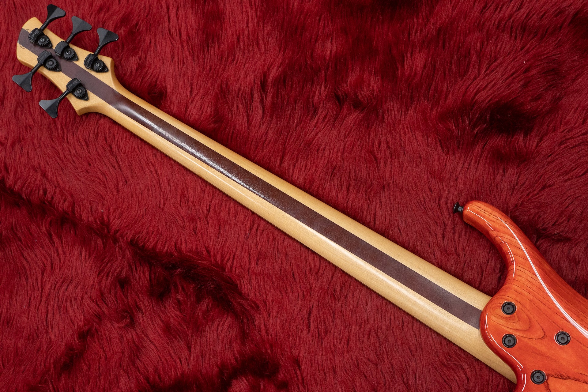 ネックはお馴染みのパープルハートとメイプルのラミネートタイプで、指板はおそらくパーフェローです。