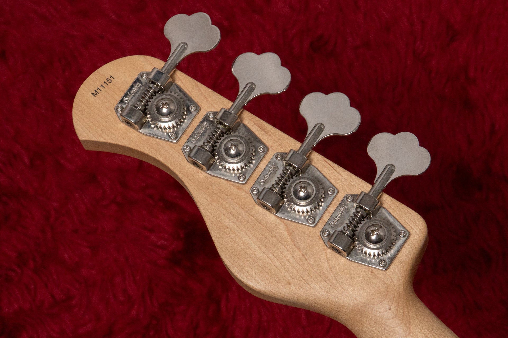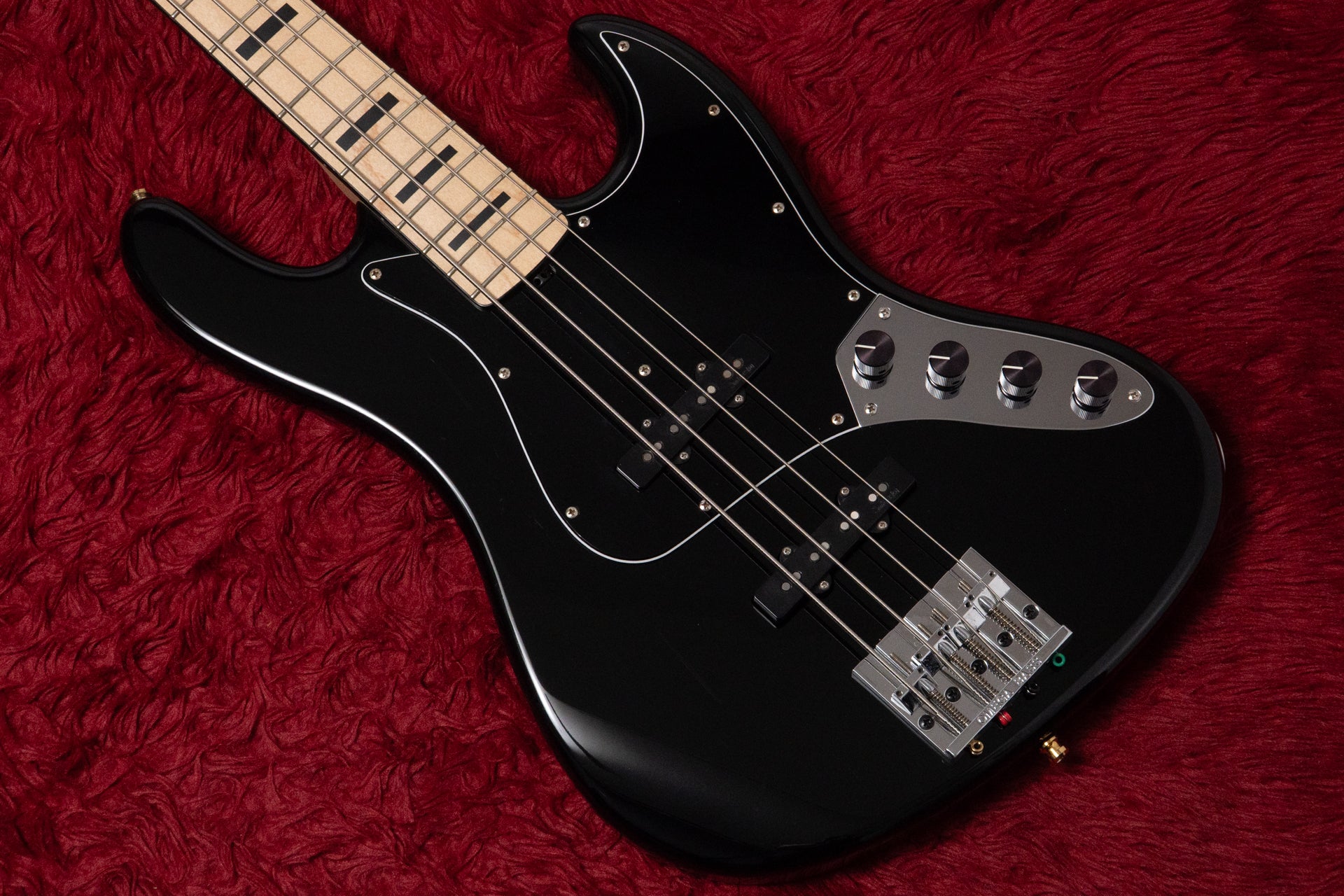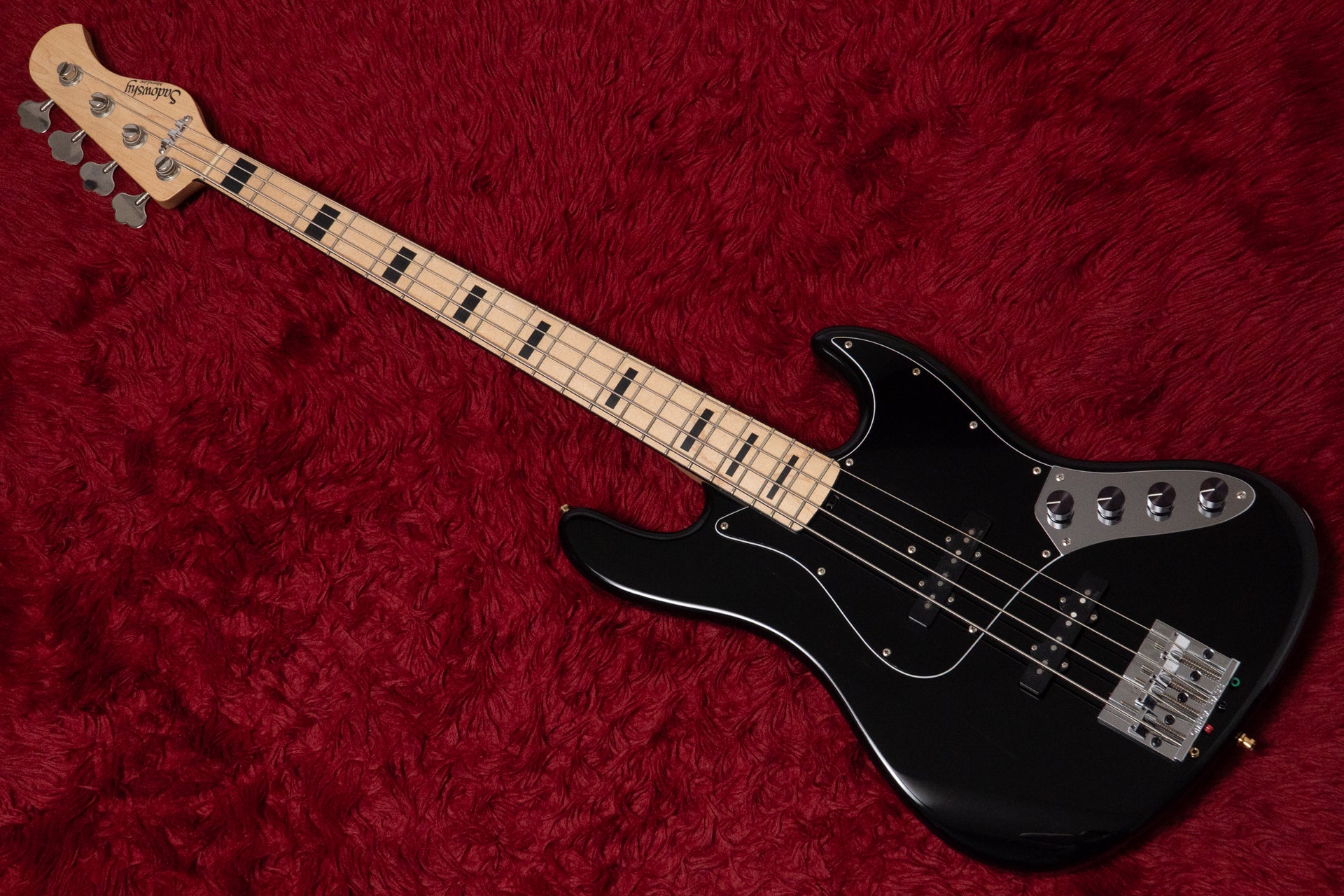 The pickups are Sadowsky Humcancelling J pickups.