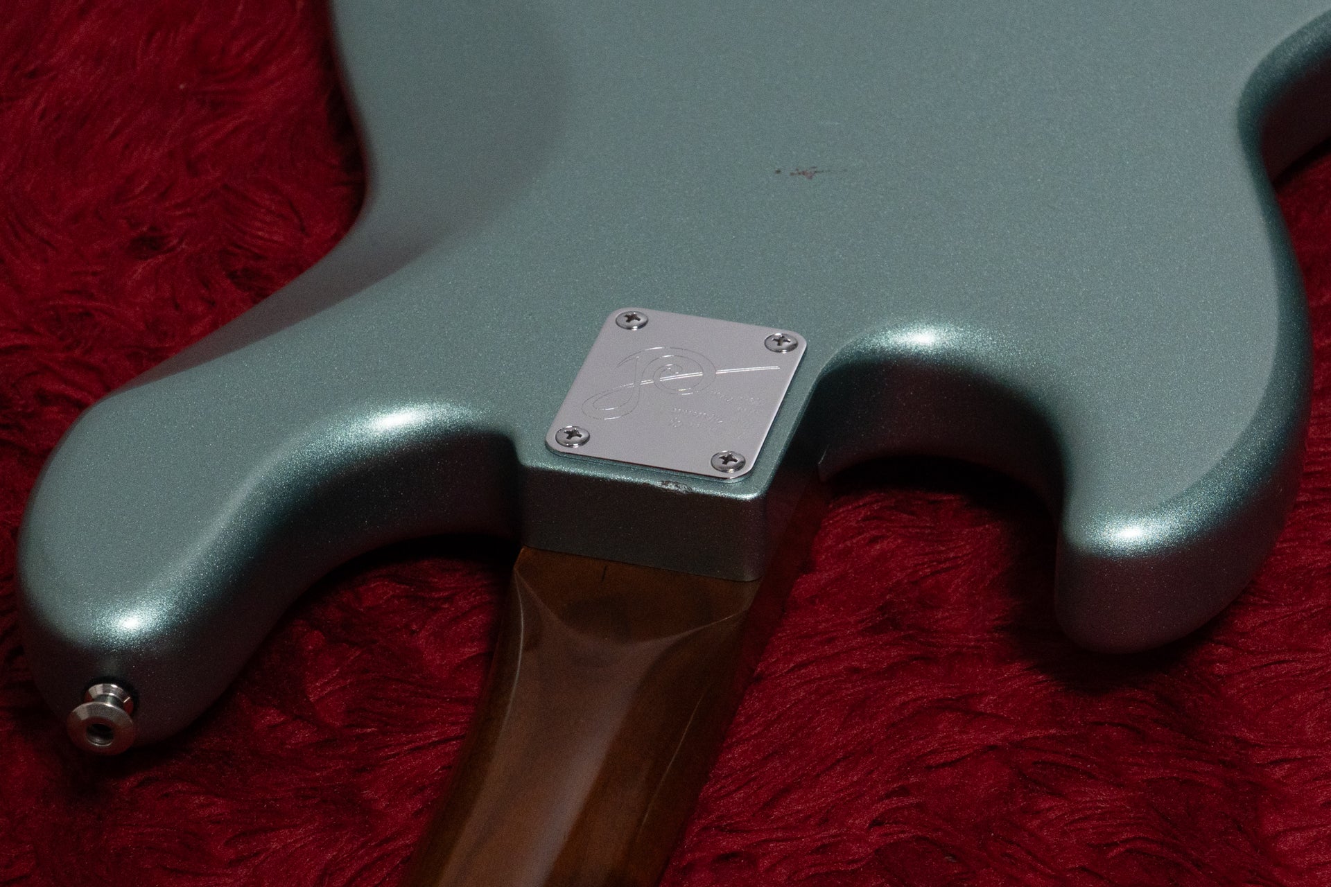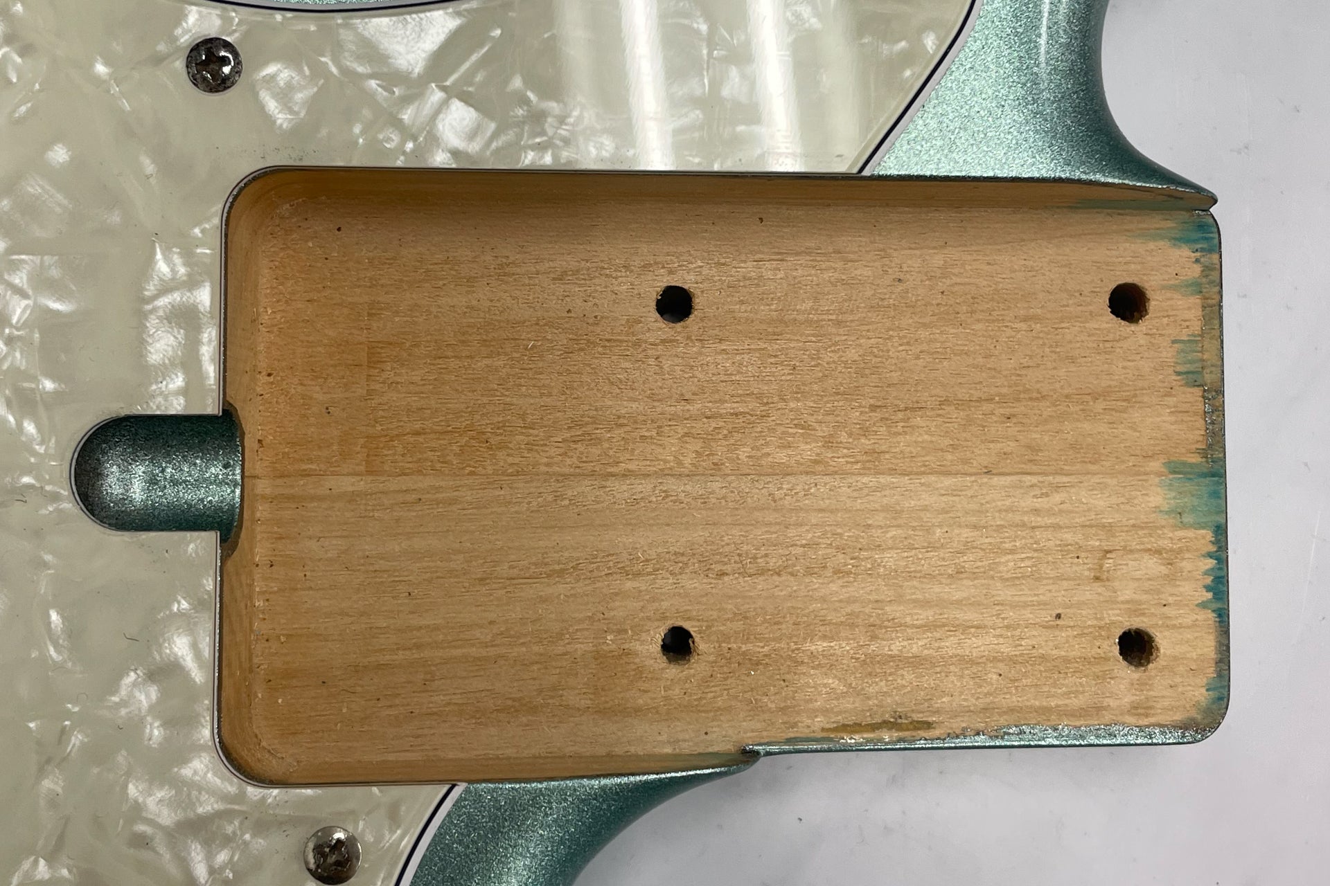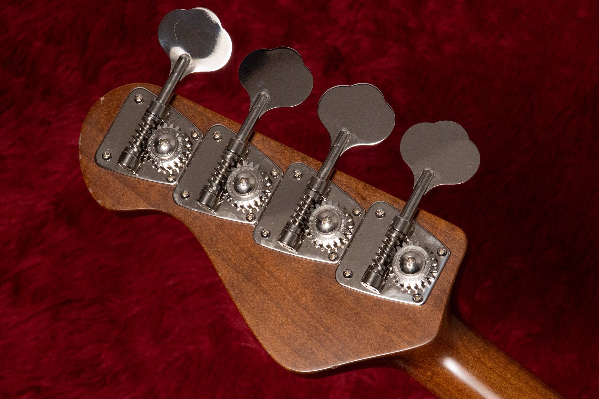 The strap pin has been replaced with a Jim Dunlop one. The handle of the 1st-string tuning machine is bent, but it still works without any problems.