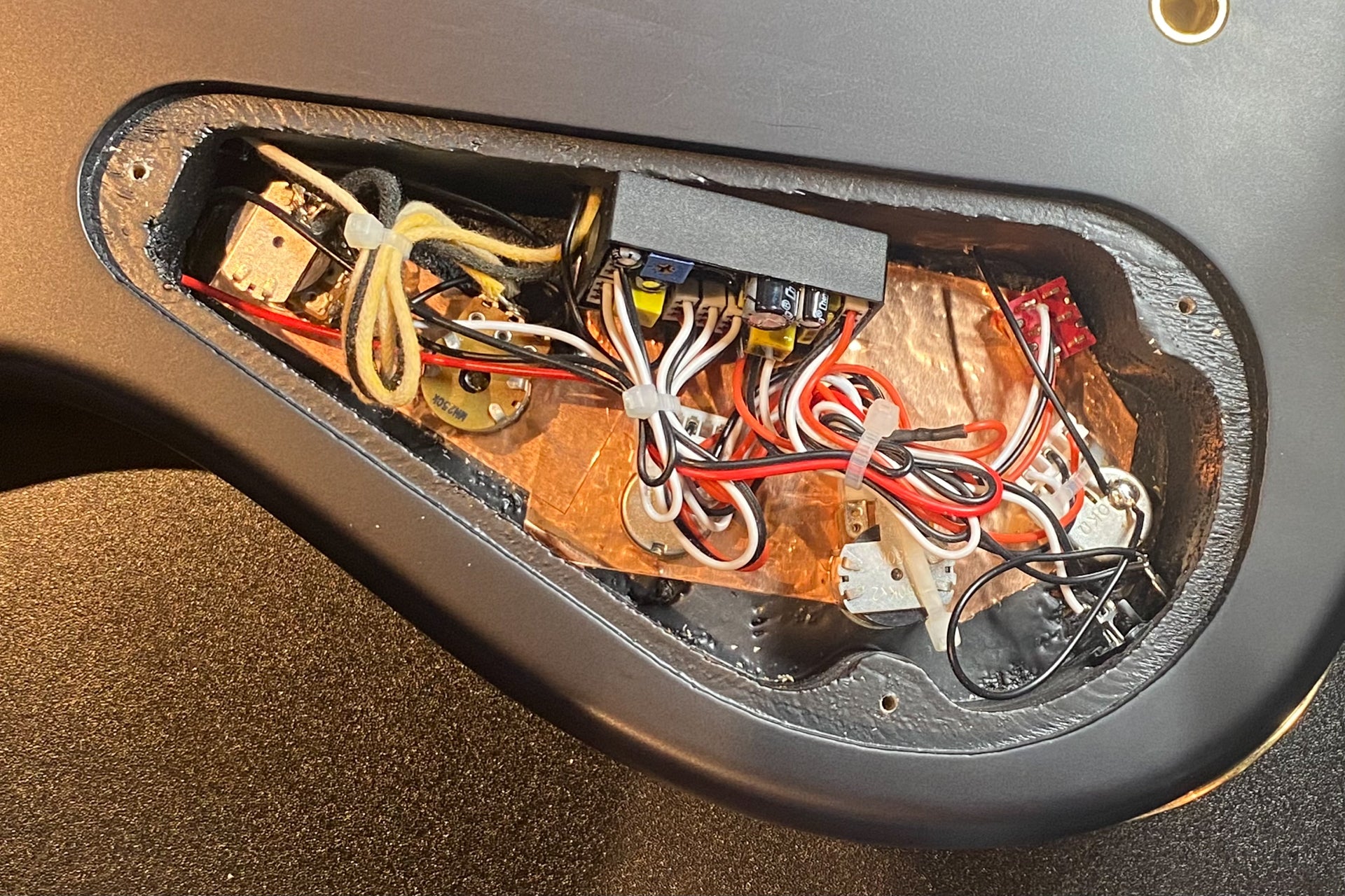 Controls: Master volume/master tone, balancer, treble, middle/mid frequency, bass, active/passive switch, preamp gain (inside cavity)