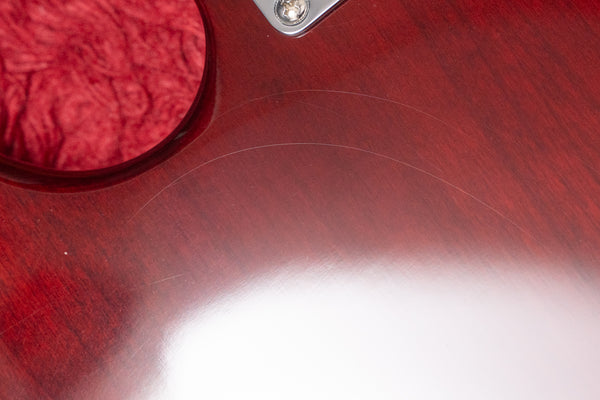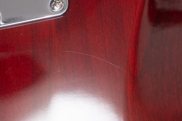 There are occasional minor scratches on the body and finish. There are scratches on the fingerboard.
