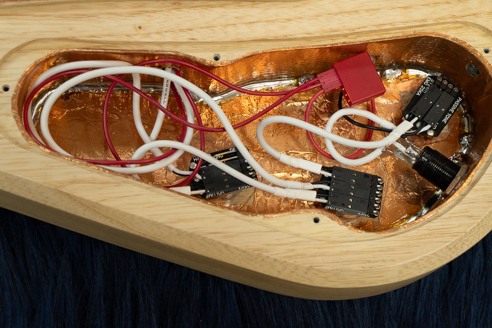 The Pickups were originally JB type, but this one has been modified and EMG Soapbar type Pickups are installed. Accordingly, the routing (Zauri) has been expanded.