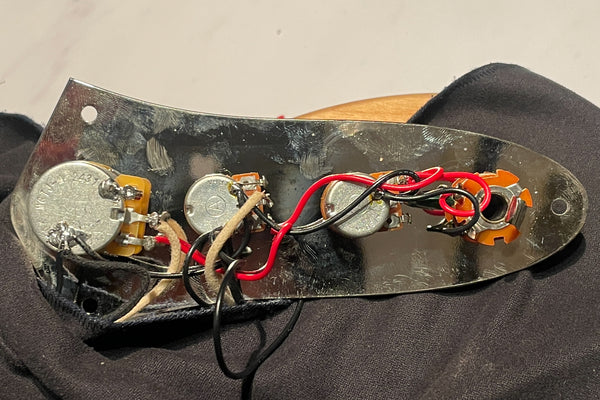 The neck pickup pot has been replaced.