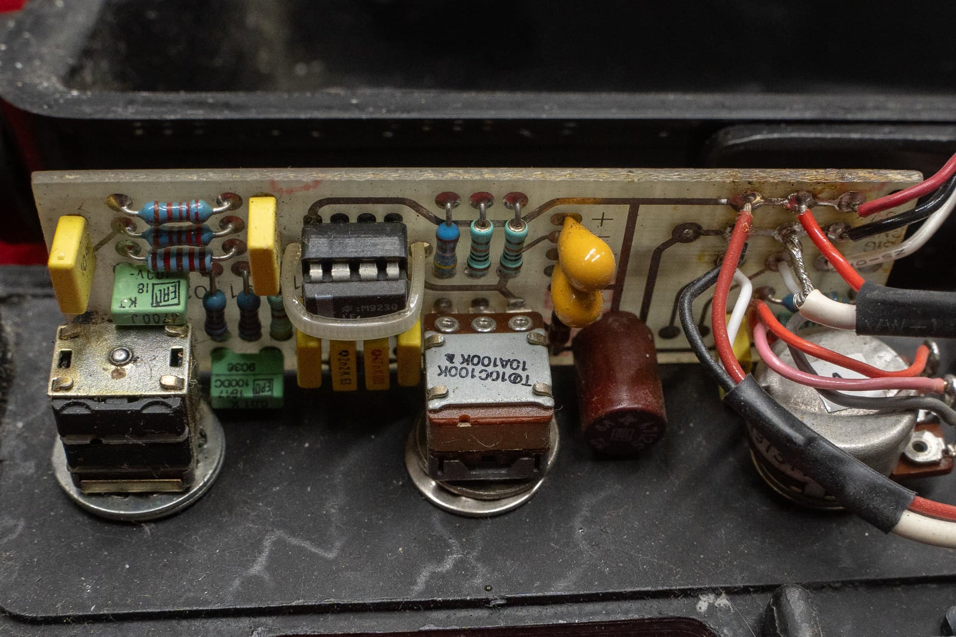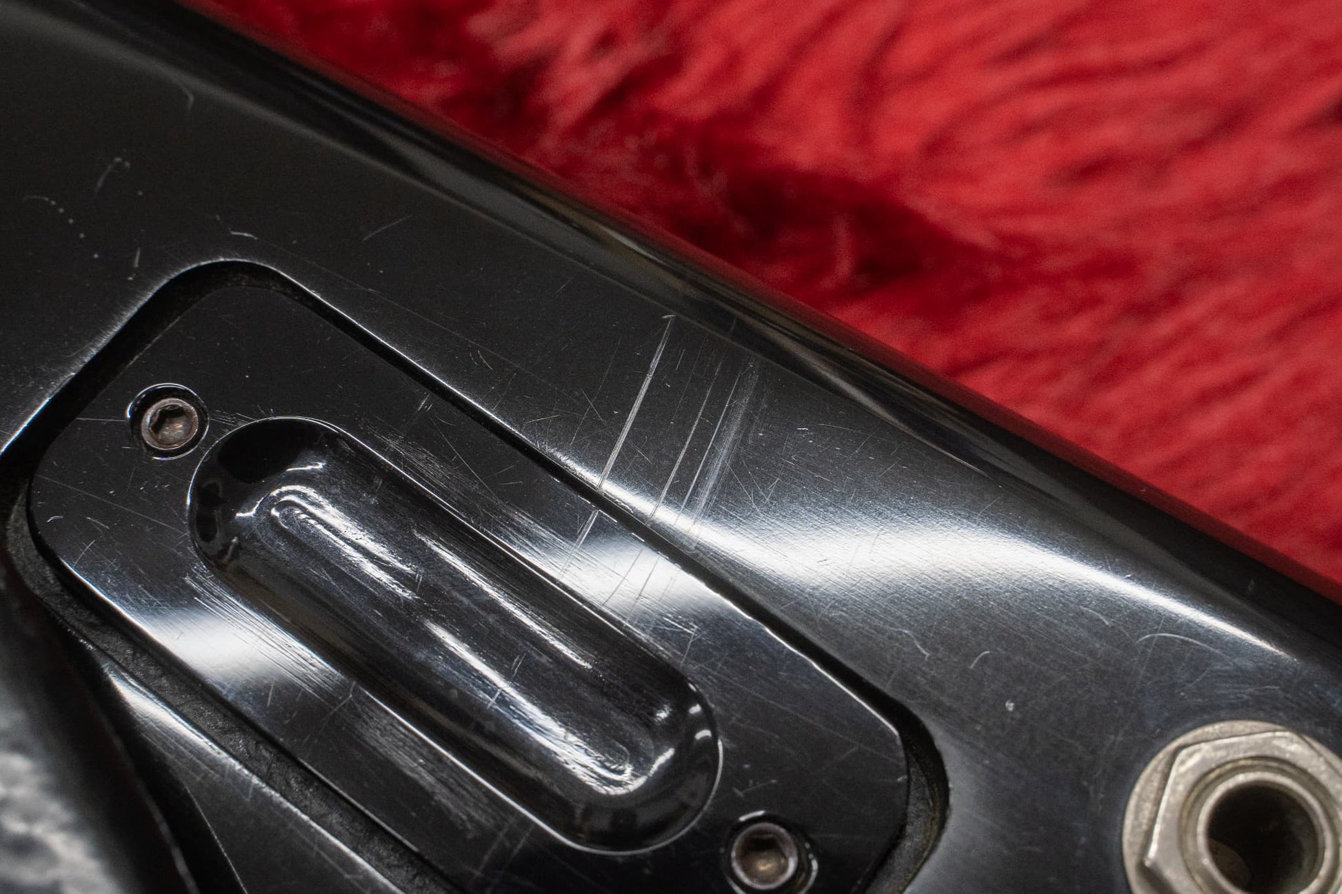 custom: A finger lamp is retrofitted. The pickup has been replaced with a recent EMG HB. When it arrived, it had a metal fret line and 0 fret, but since the fingerboard was thin and the fret line was sticking out, GIB applied an epoxy coating to the top surface while leaving the fret line as it is. Due to the coating, the 0 fret has been removed and a new nut has been installed. Due to this, part of the headpiece has been shaved off.