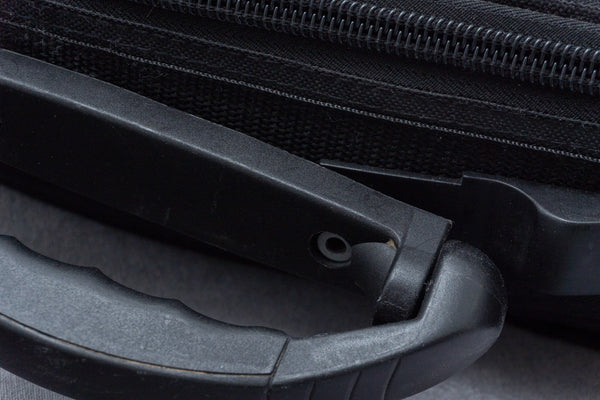 The screw on the case handle is missing. The zipper pull is missing.