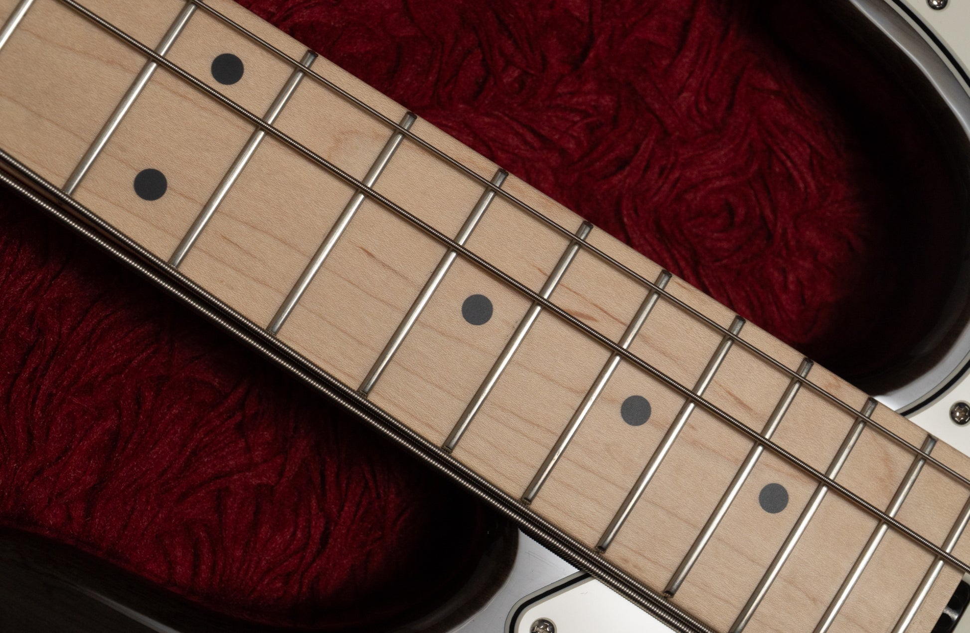 Many aspects, such as the neck angle and initial setup, adopt a design that is a further development of the Fender style, strongly indicating an emphasis on playability.