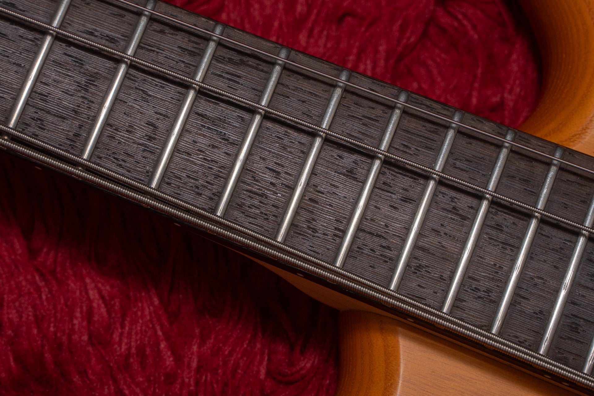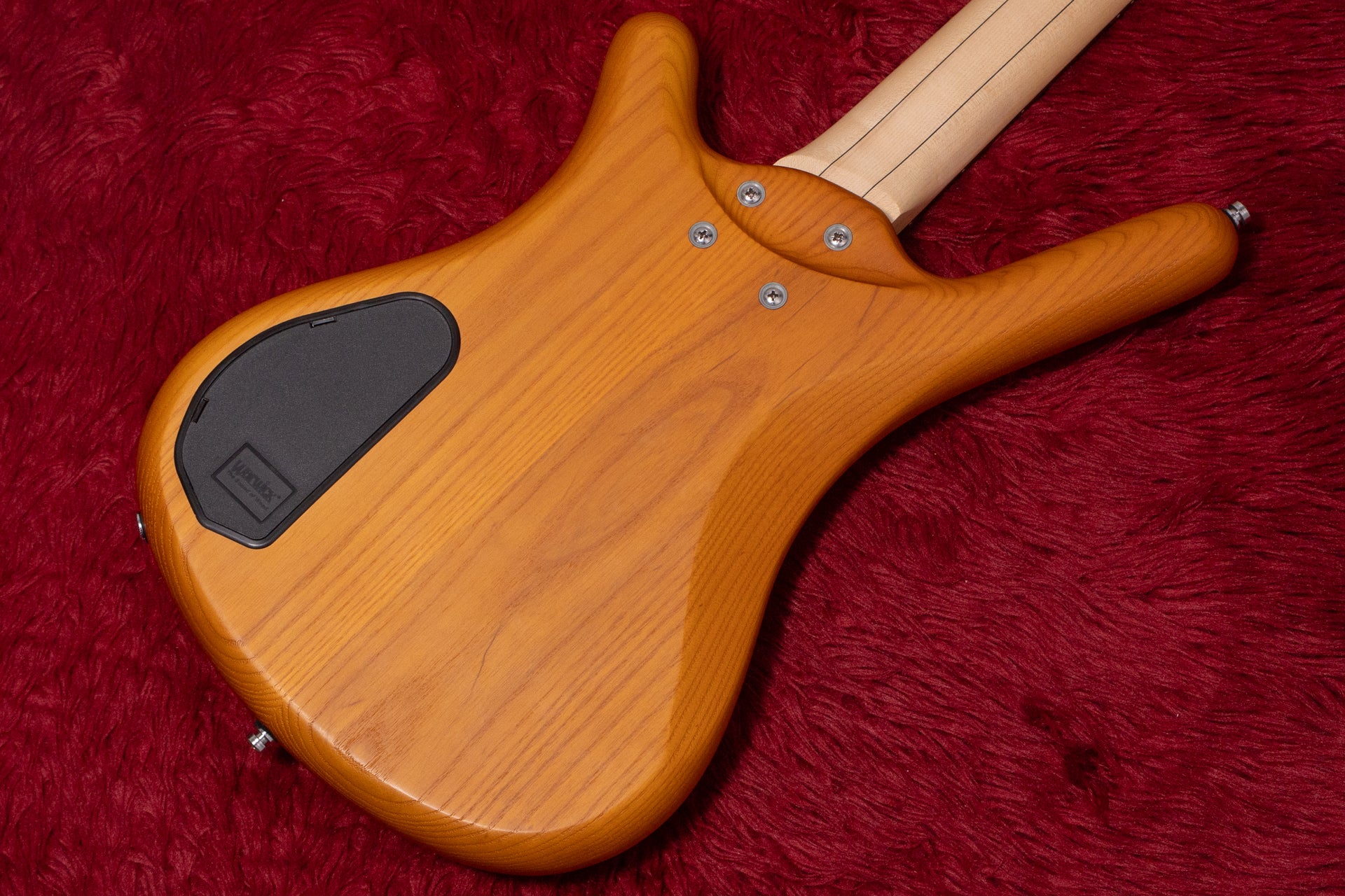 The body is made of ash and the fingerboard is a Wenge, typical of Warwick.