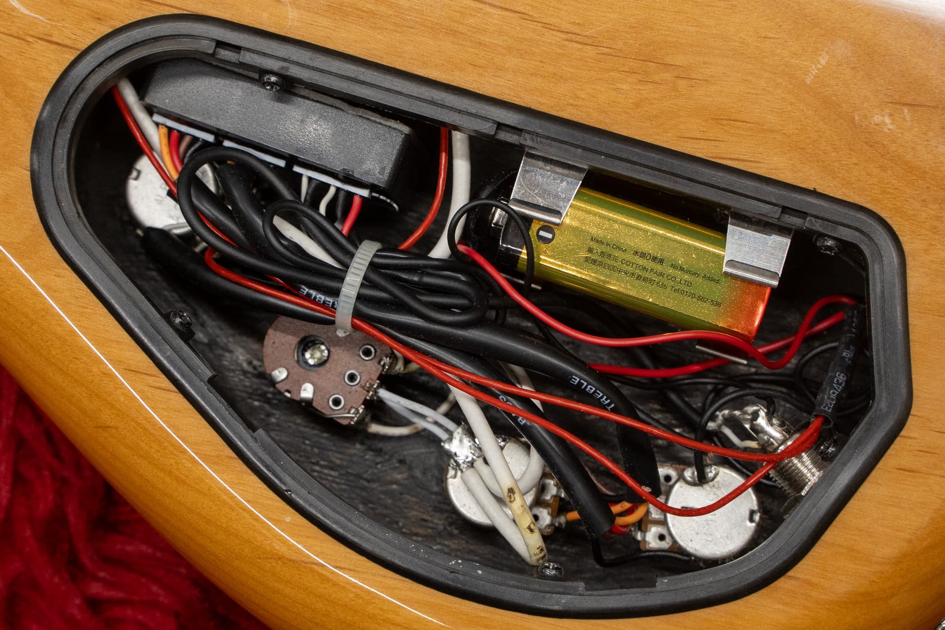 The electrical system is in good condition, with a slight buzzing noise when the master volume is turned clockwise. Other controls are in good working order.