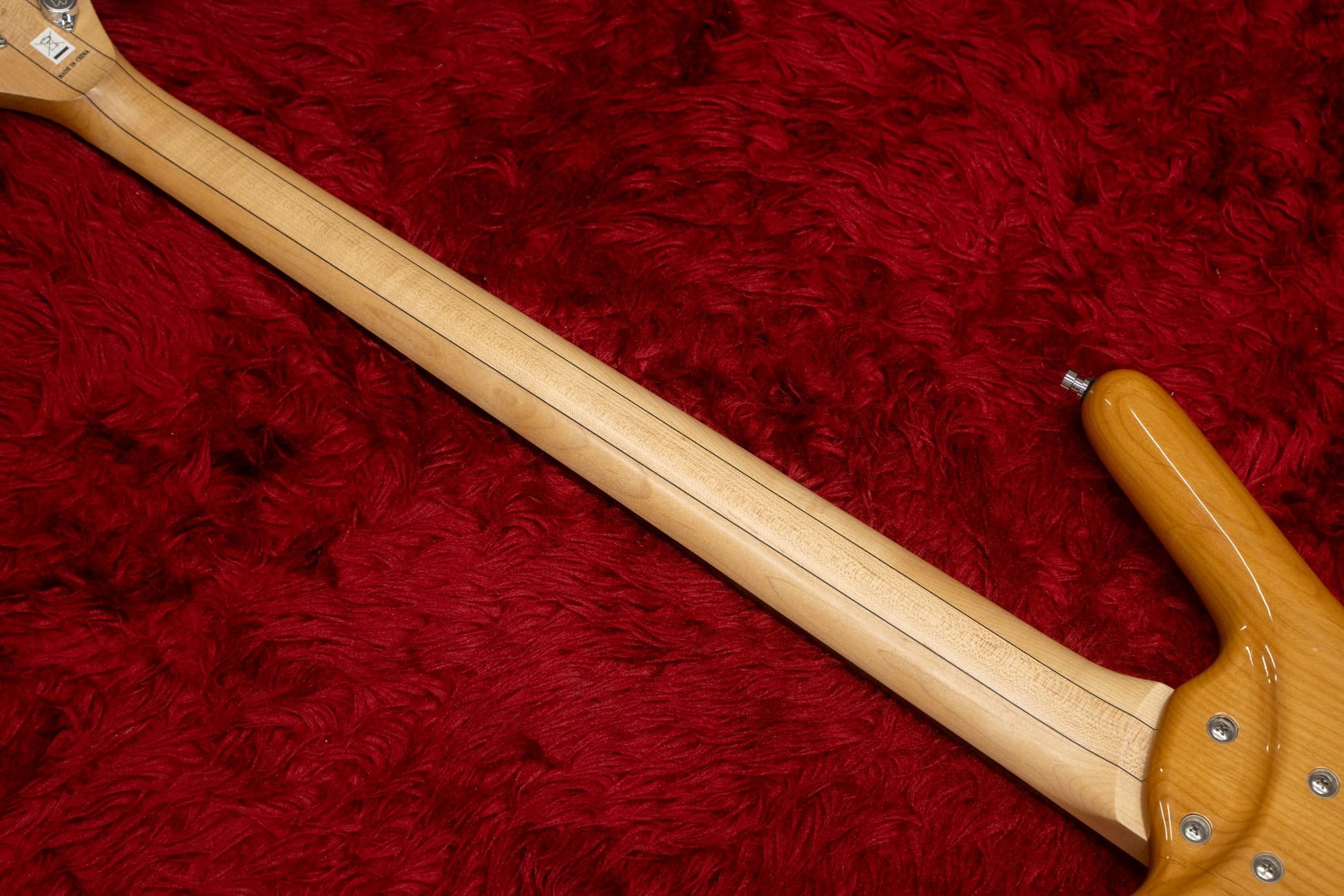 The neck is a laminate type, mainly maple, and the fingerboard is probably rosewood.