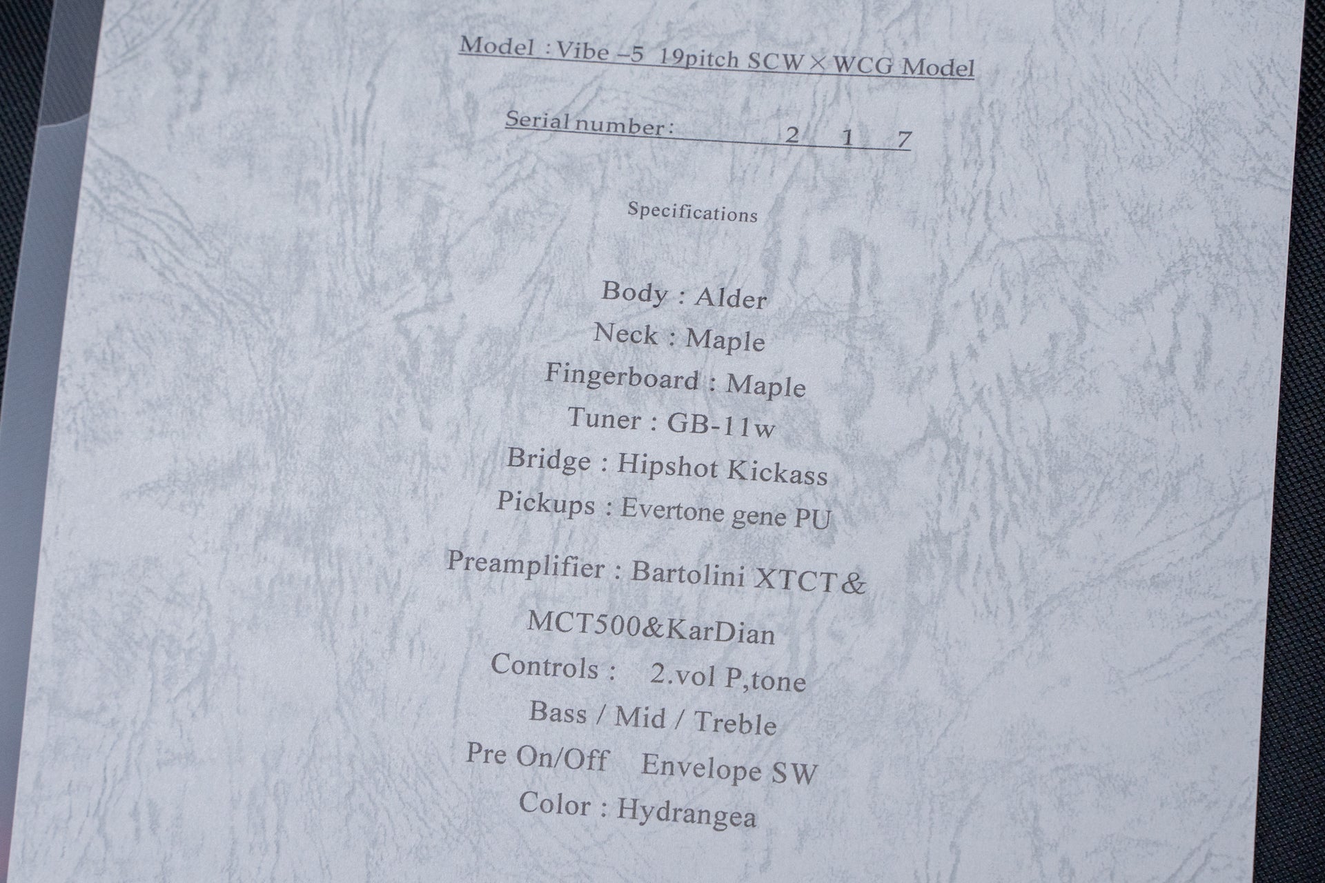 The PU is Evertone gene, the preamp is Bartolini XTCT/MCT500, and KarDiaN Trehalose.