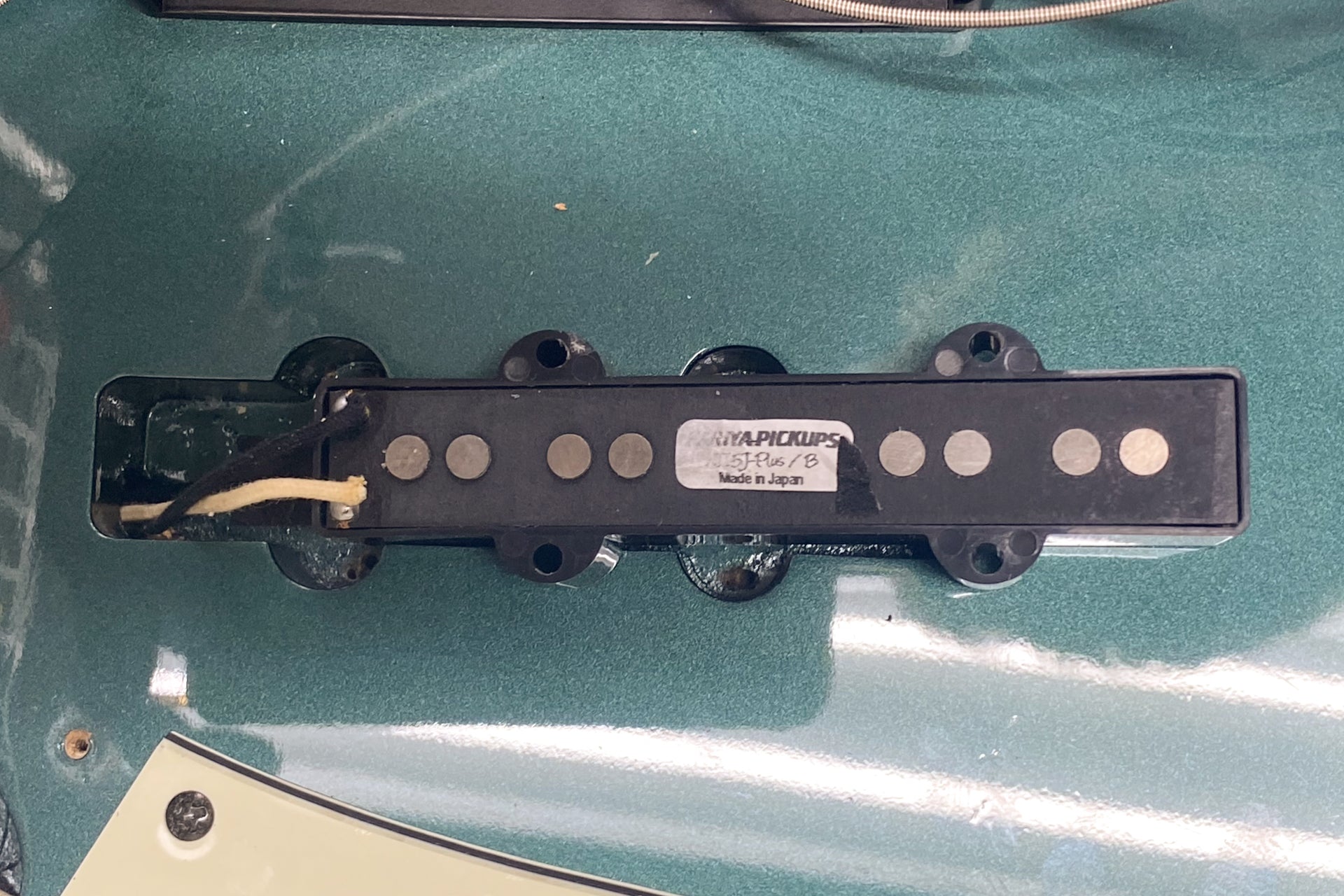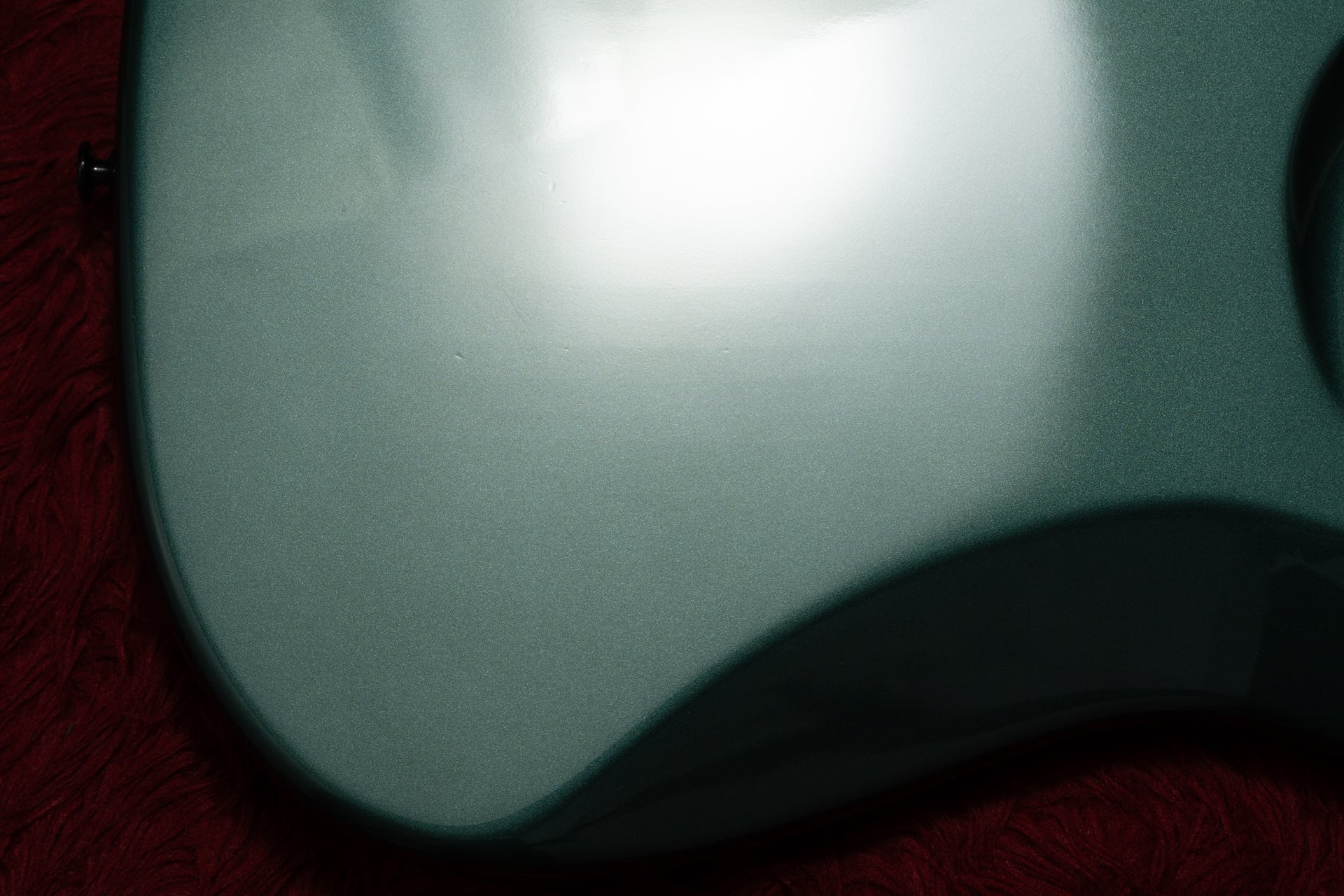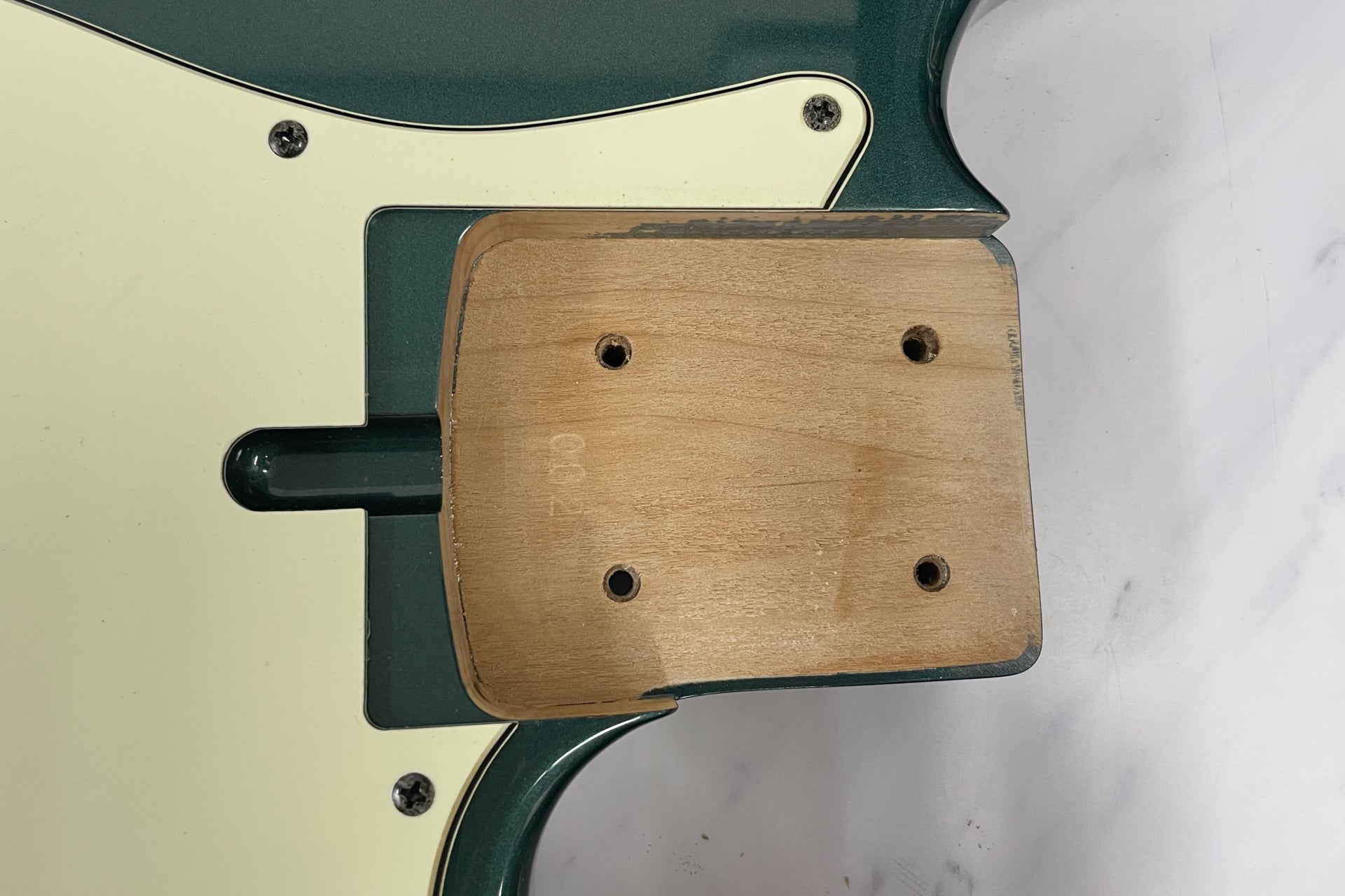 The body and painted surface have small dents and scratches, but are generally clean. The pickup cover is worn.