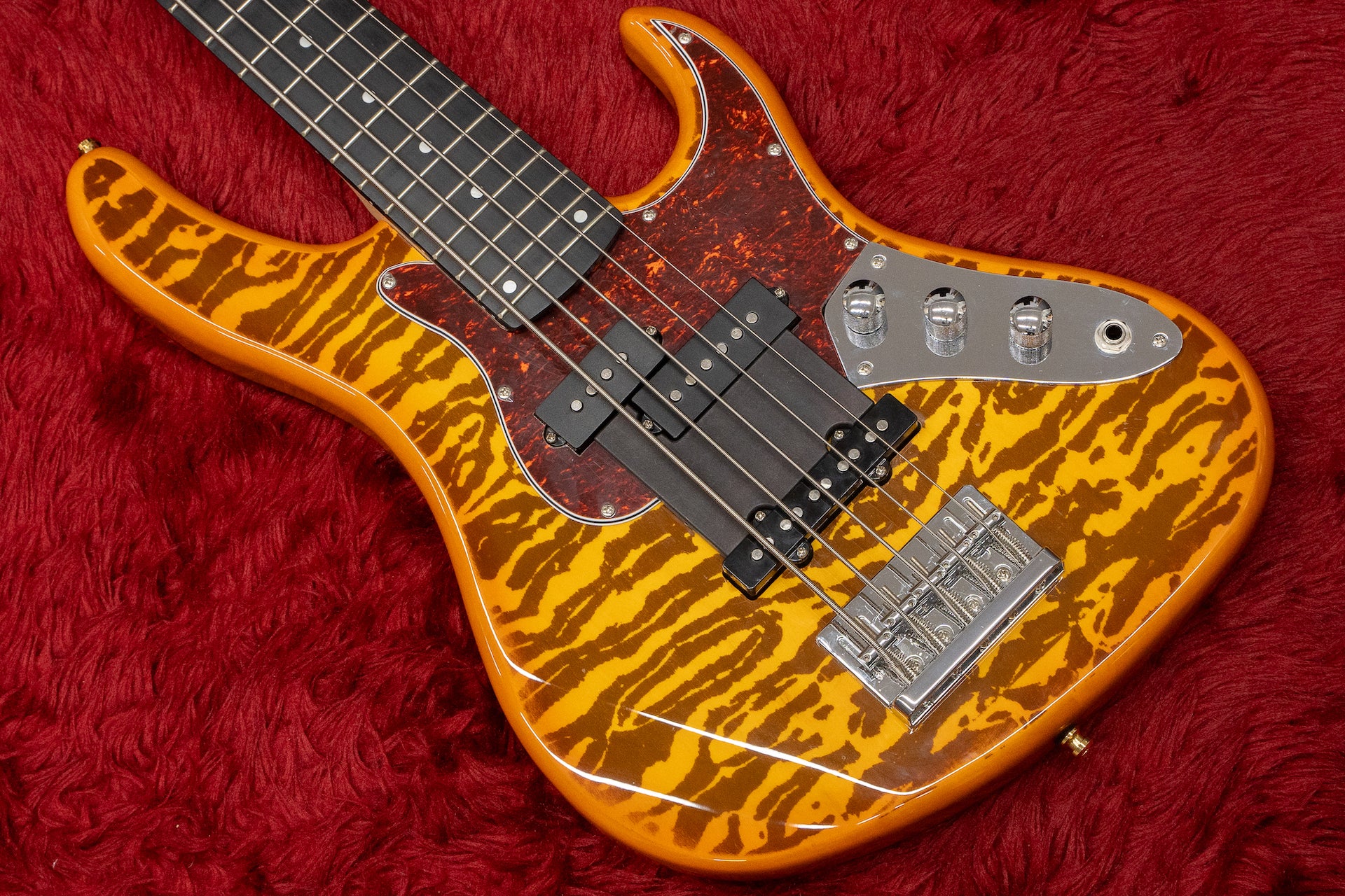 The front PU by itself produces a fat and lively sound like a Precision, the rear PU by itself produces a strong high-mid and rich presence, and the mix produces a deep and bouncy sound.