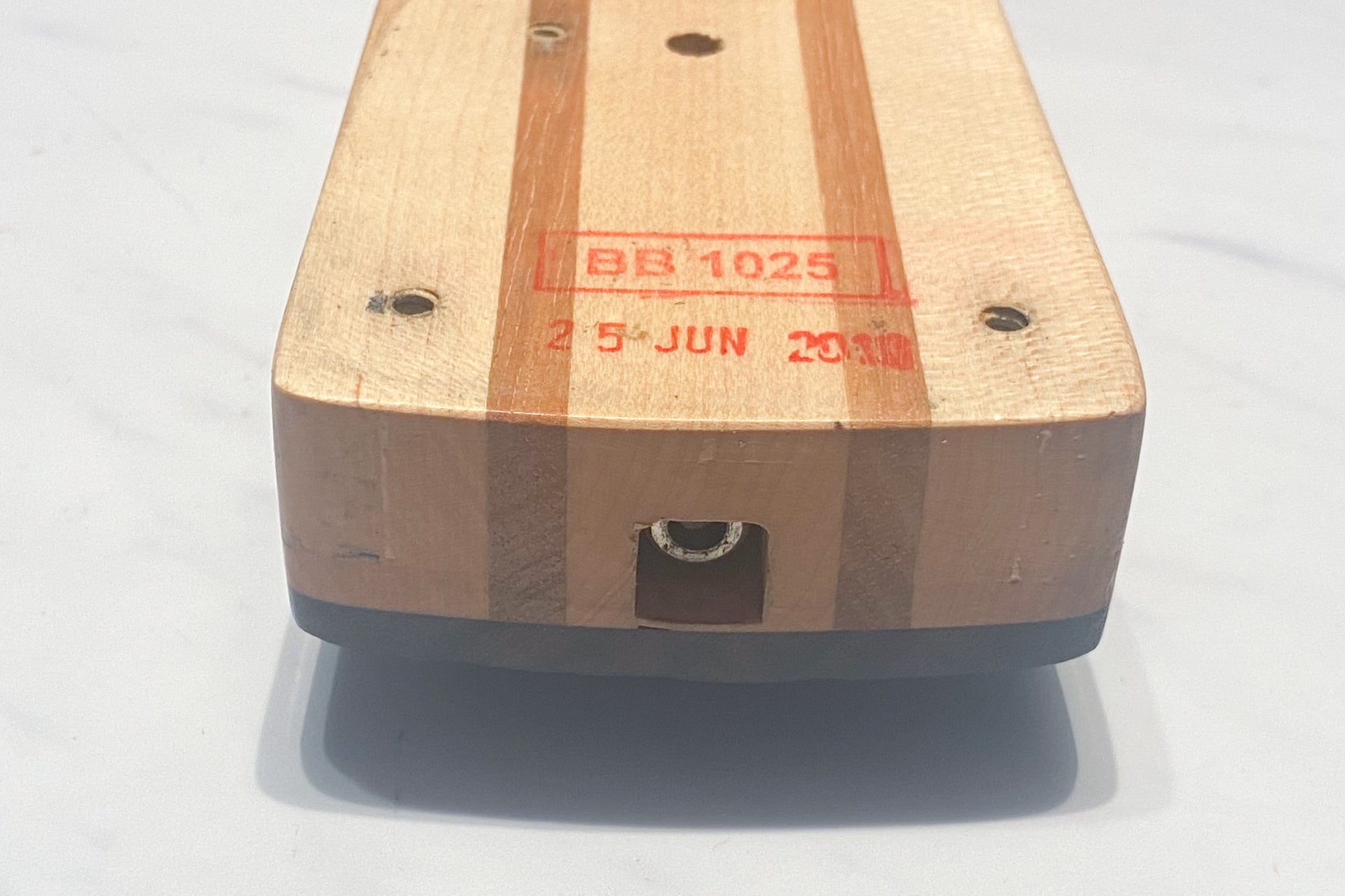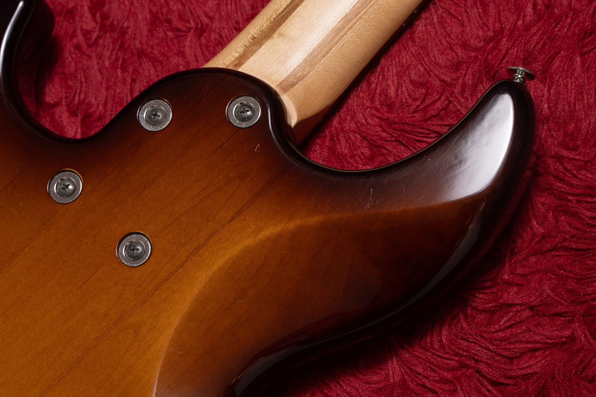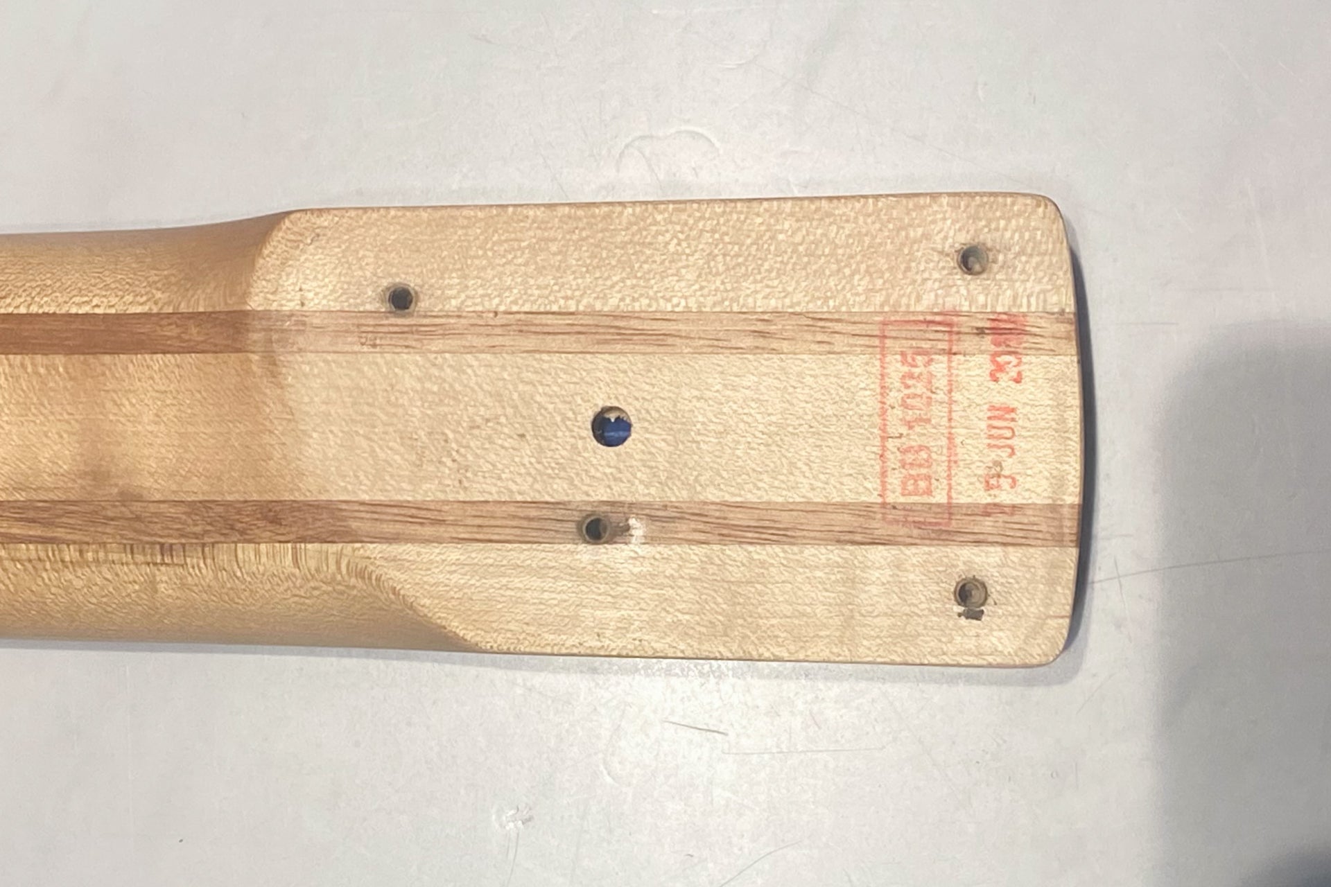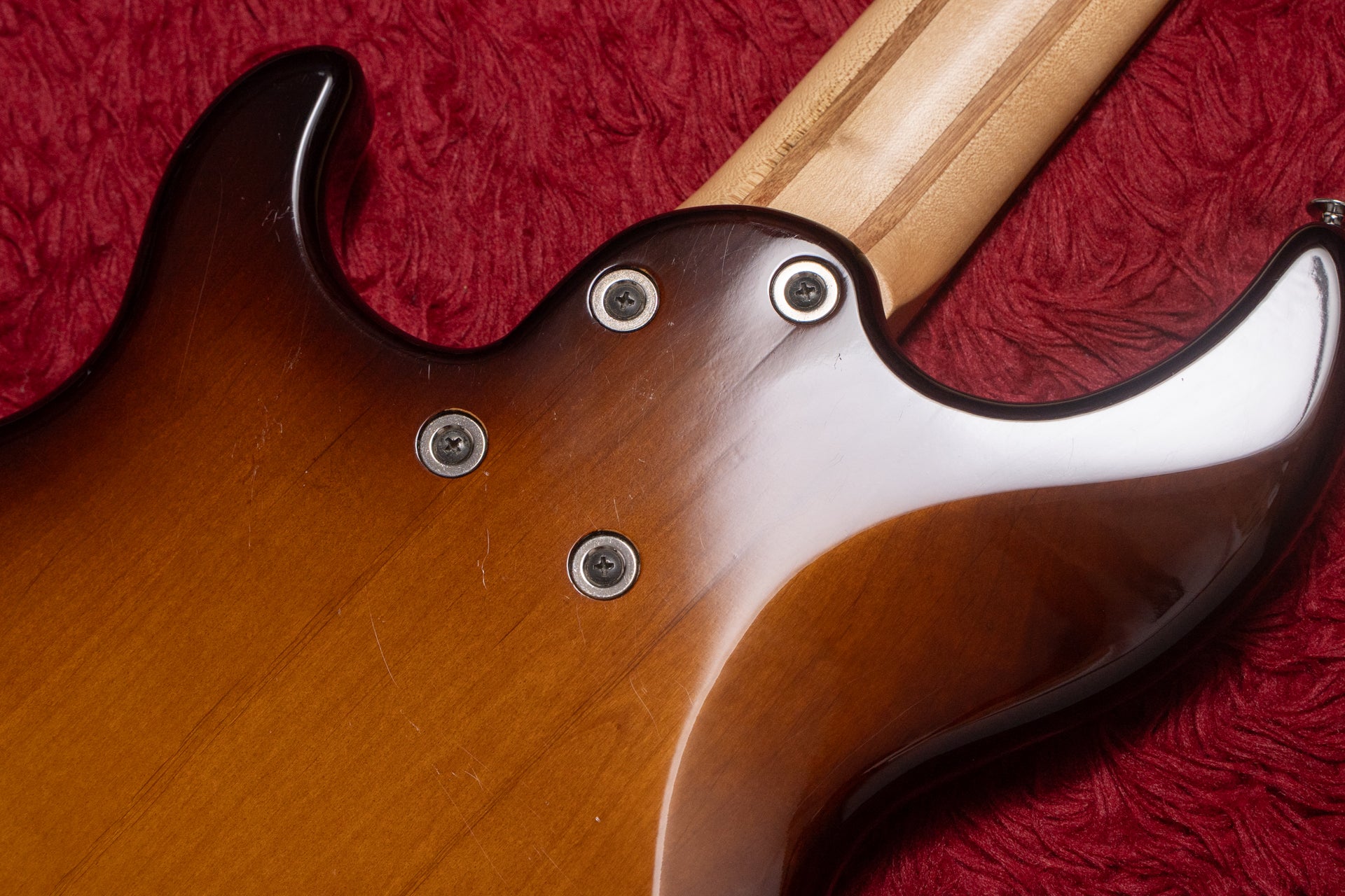 The neck has a crack near the second-string tuning machine on the back of the headstock. There is a screw located right above the adhesive part of the neck ply, and it is thought to have been caused by the force of tightening the screw. There are currently no issues.