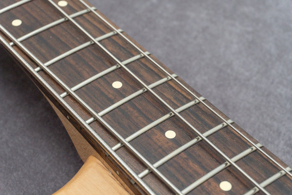 It features traditional PJ-style pickups, delivering both a robust, full-bodied tone and sharp clarity.