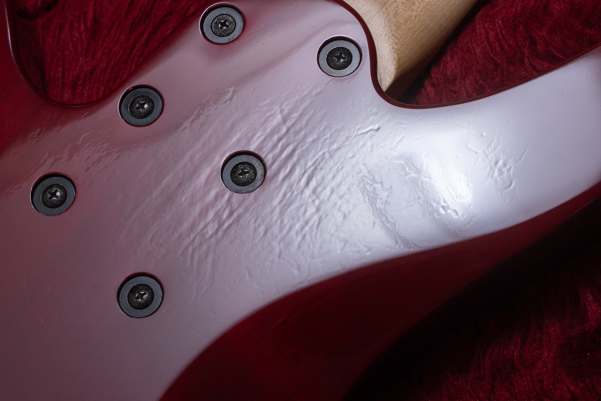 The neck is a laminate type made of three pieces of beautiful straight-grained maple glued together.