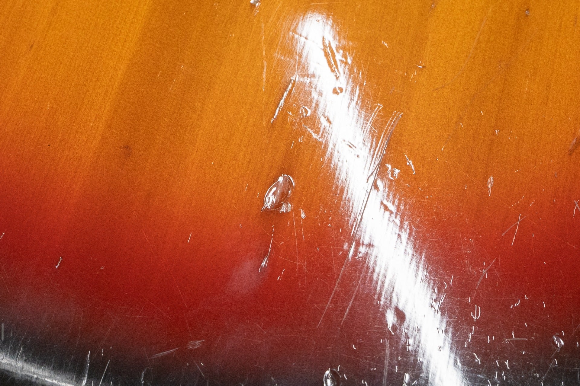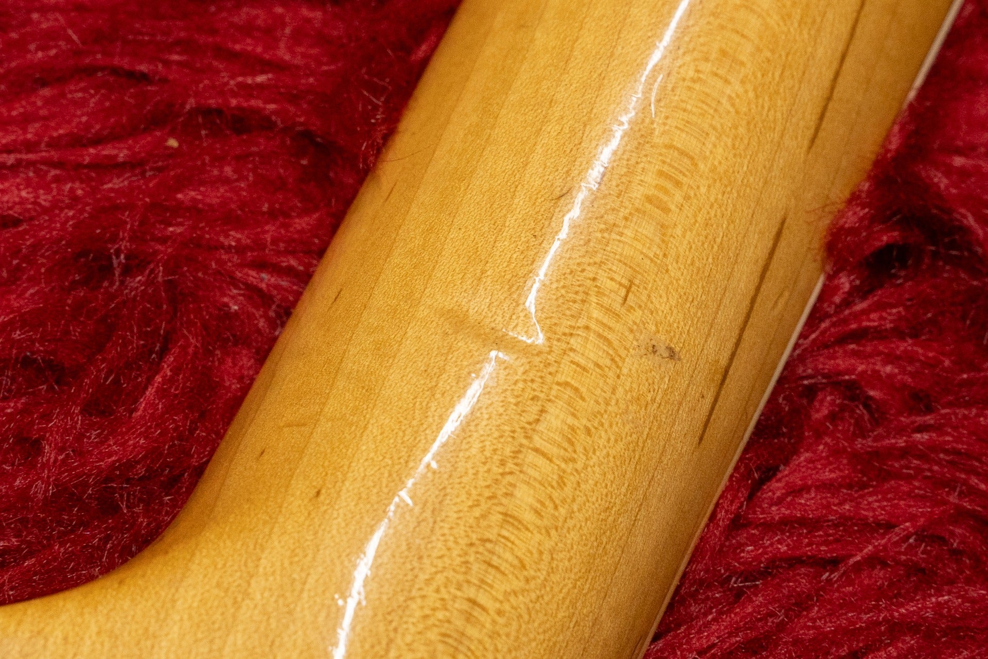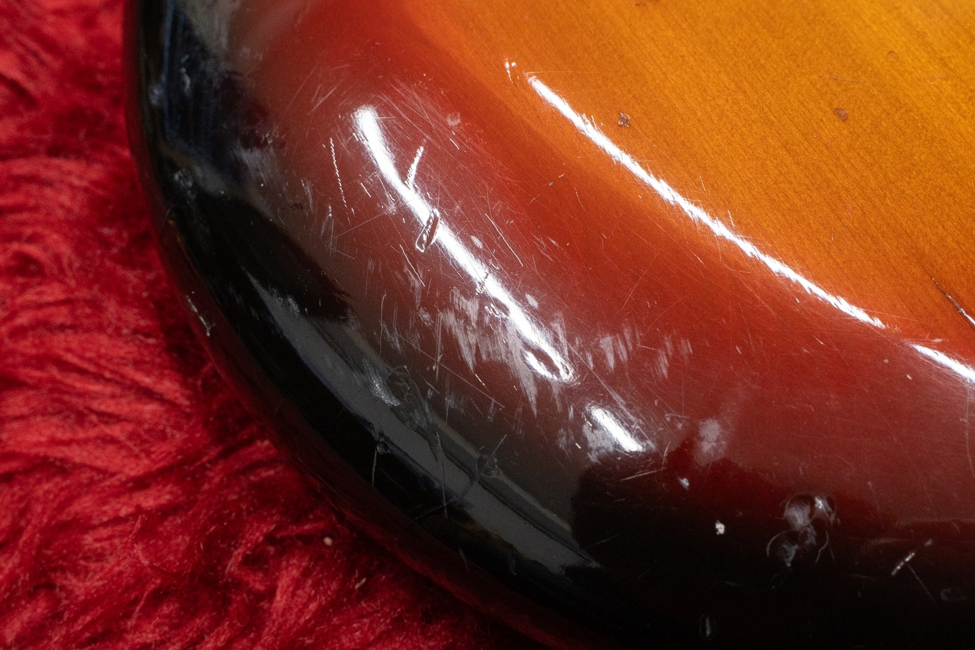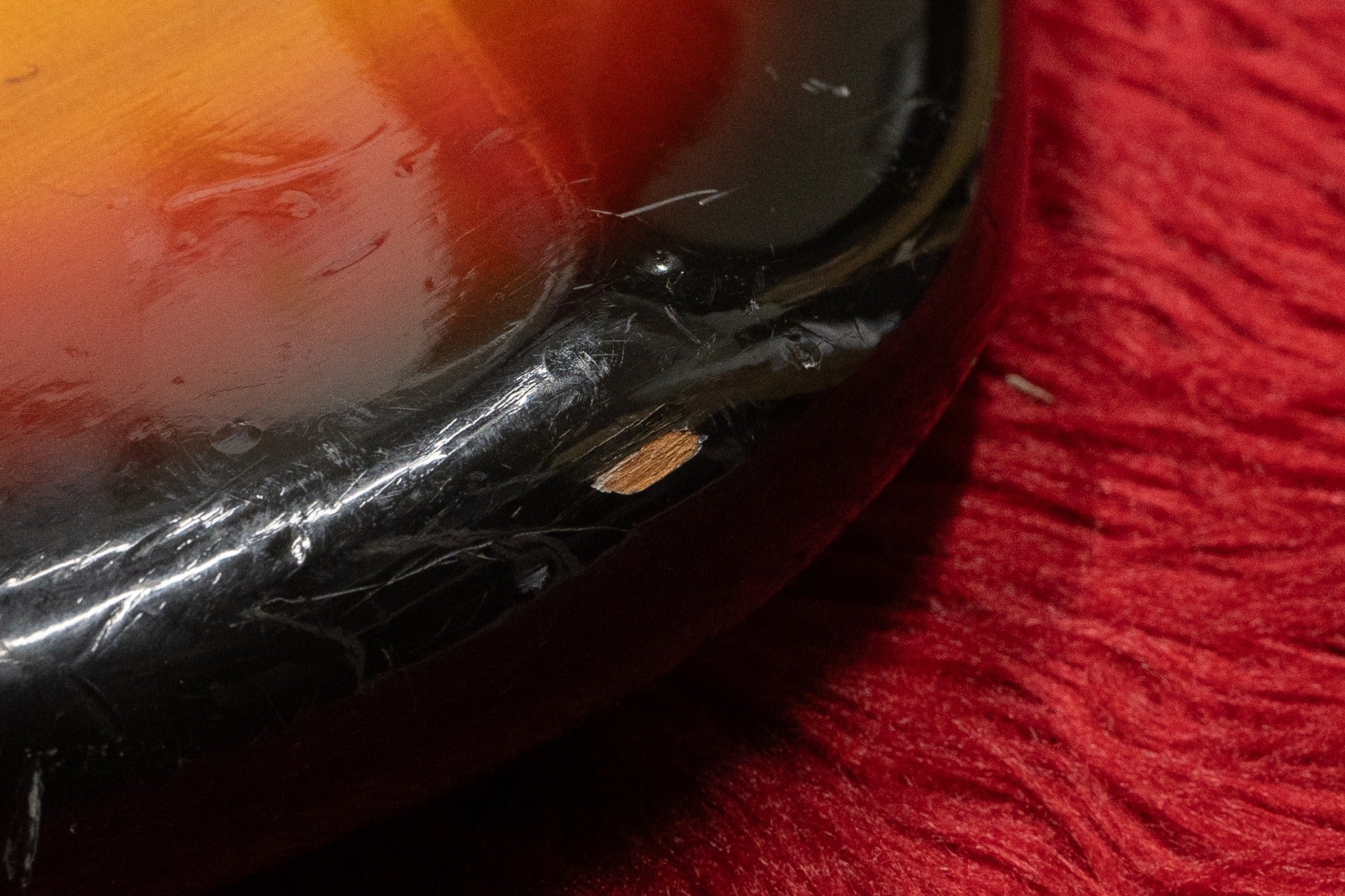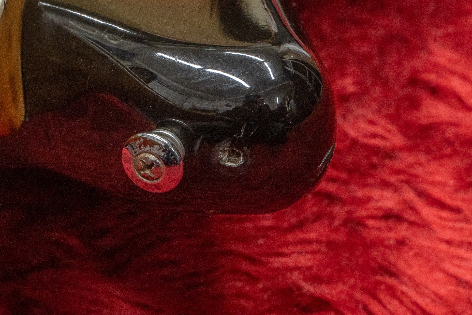 There are signs that the strap pin on the neck side has been repositioned and the original lower hole remains.