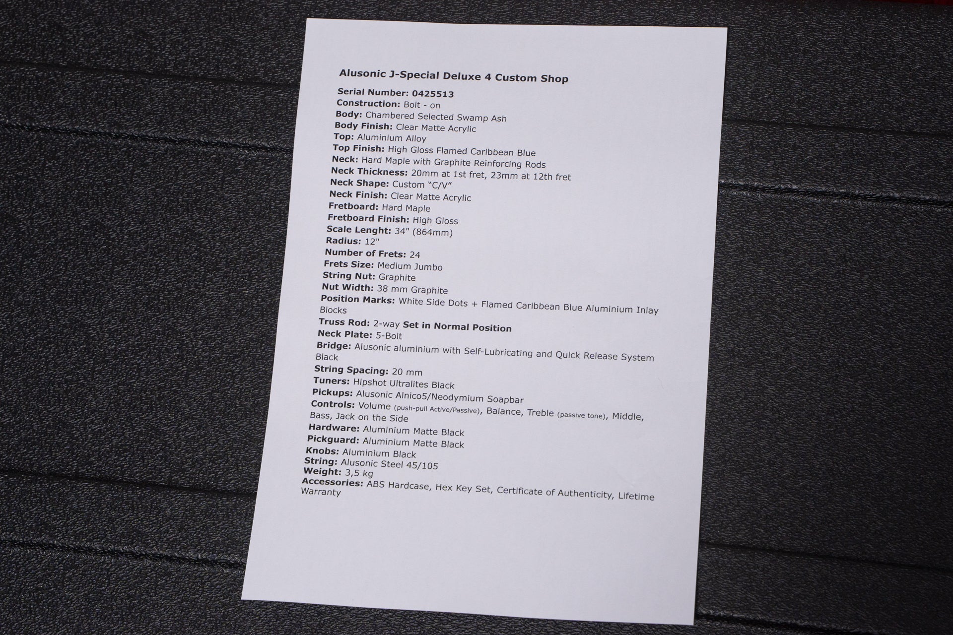 Accessories: ABS Hardcase, Hex Key Set, Certificate of Authenticity, Lifetime WarrantyAccessories: Original hard case, warranty card, instruction manual