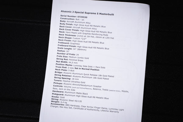 Back Cover Finish: High Gloss Audi R8 Metallic Blue Neck: Hard Maple with Graphite Reinforcing Rods