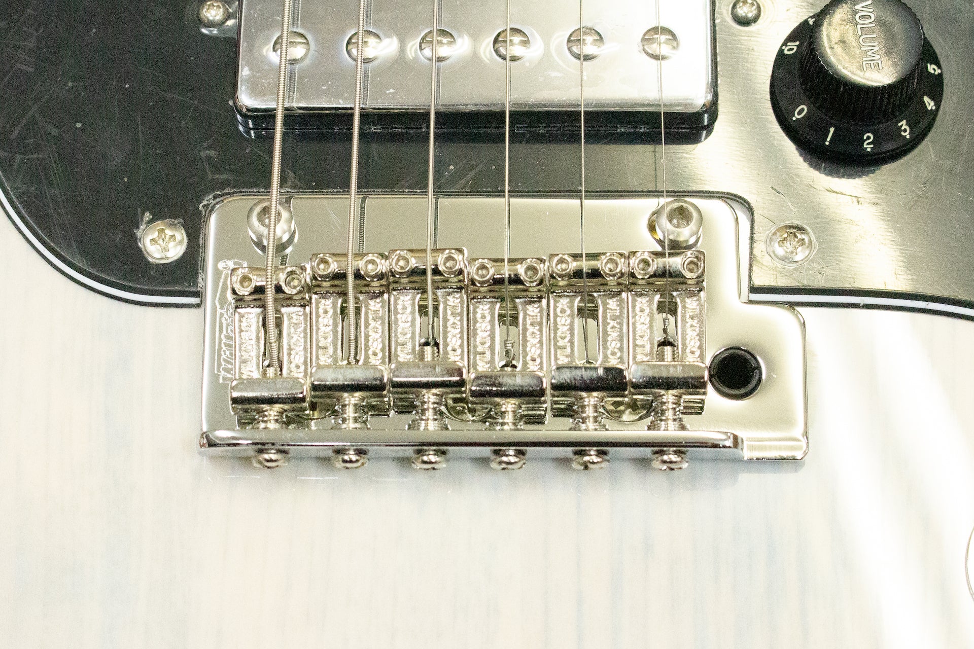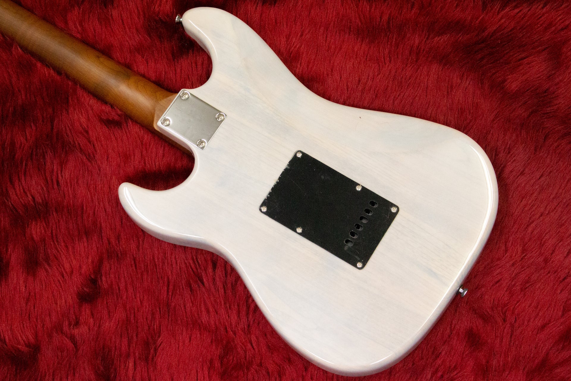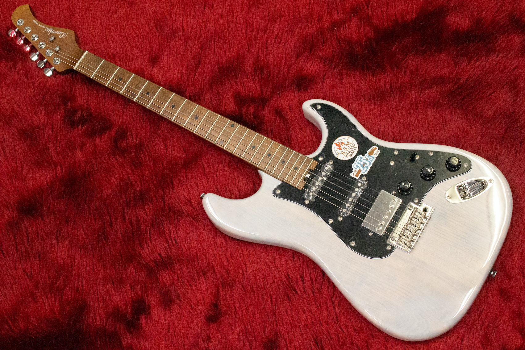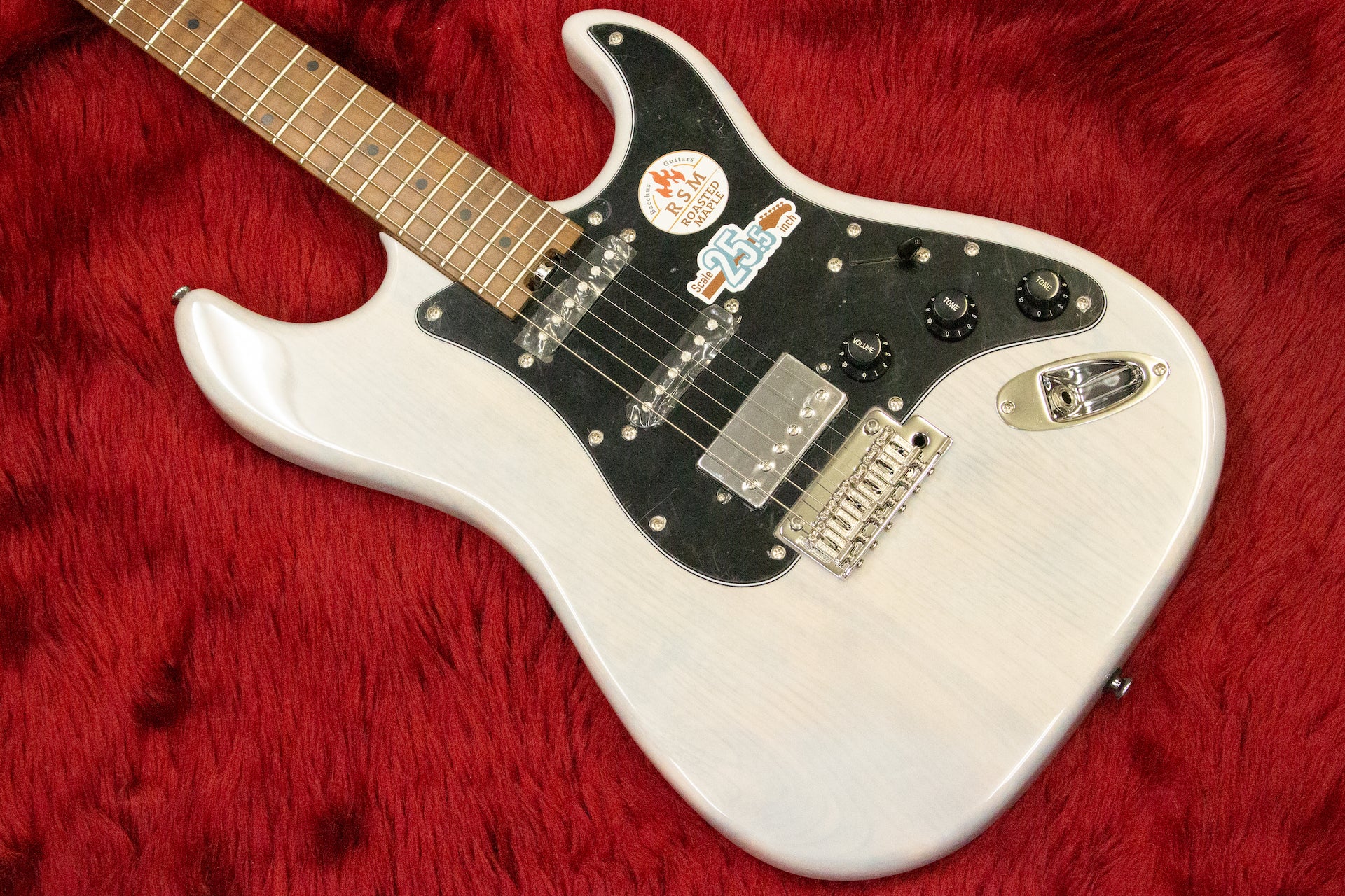 Many aspects are modern, such as the Graphtec TUSQ nut, two-point tremolo unit, locking pegs, and SSH pickup layout.