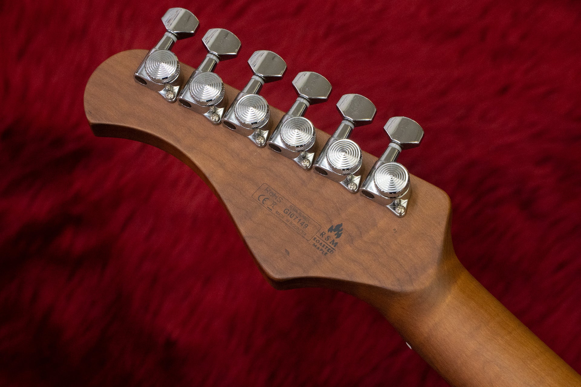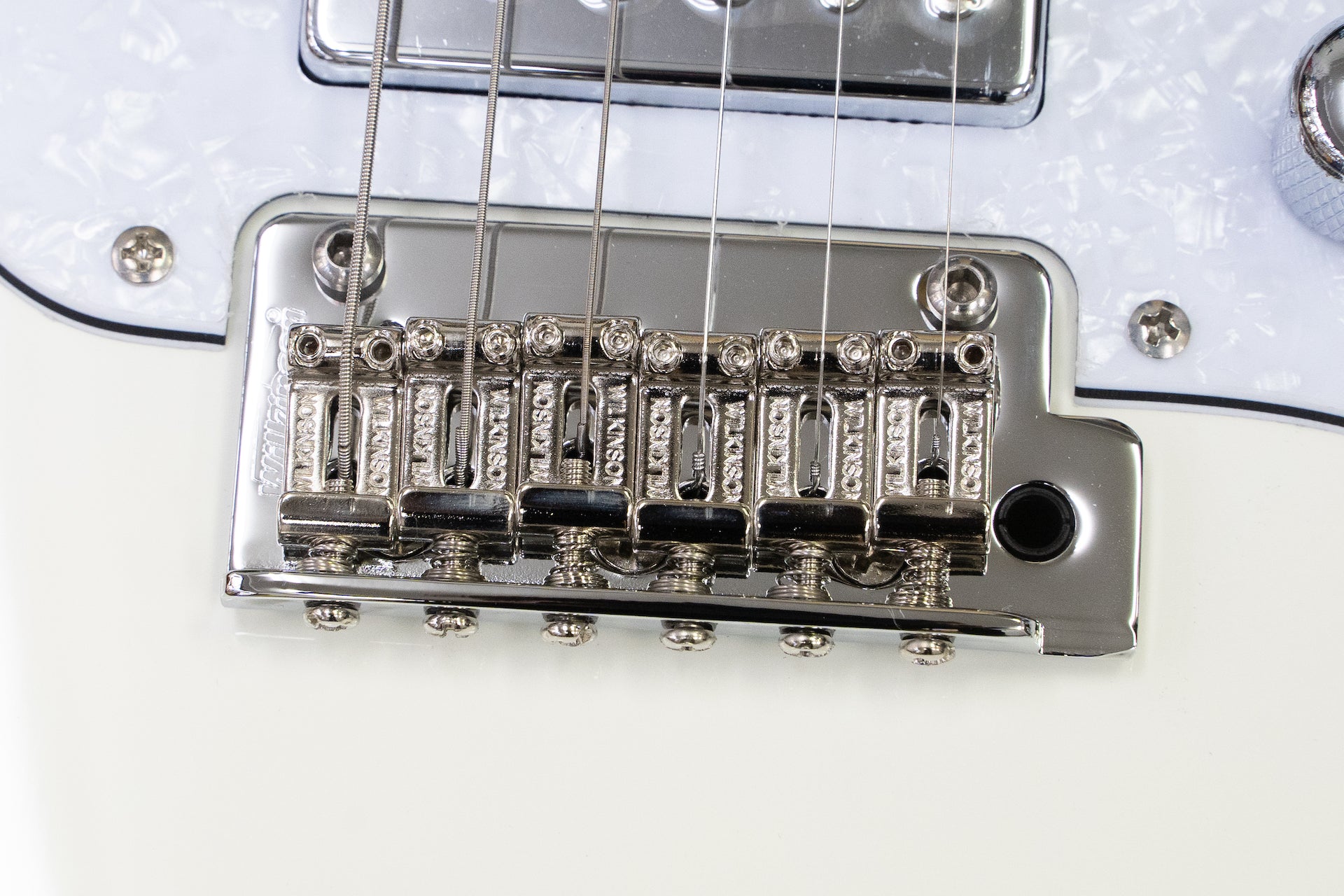 The tuning keys are locking type, and the bridge is a Wilkinson 2-point support.
